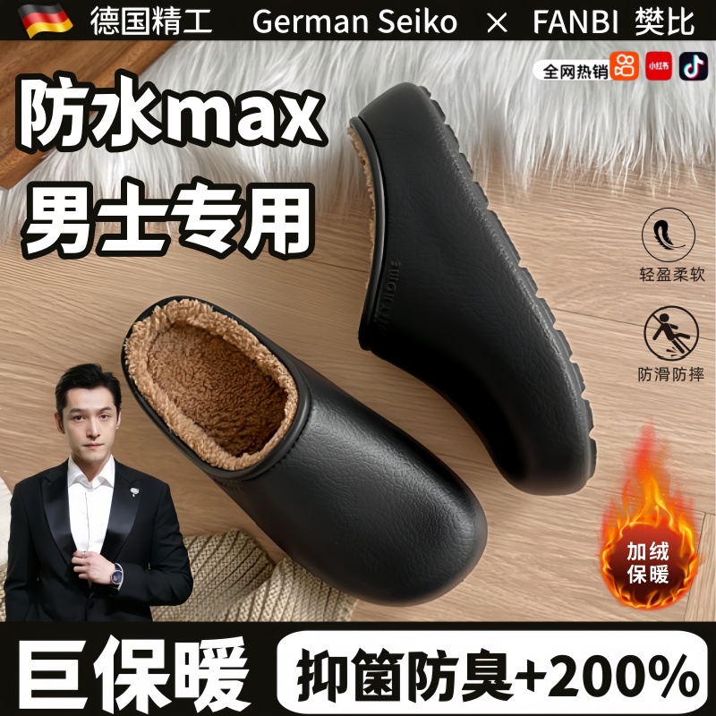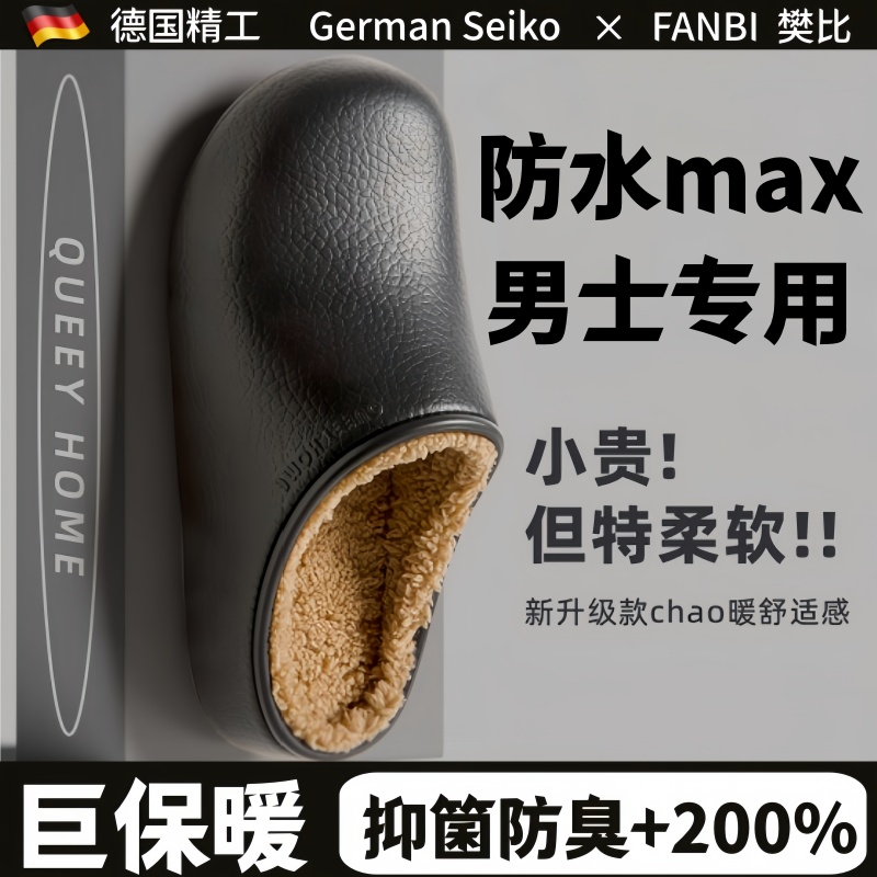 防水加绒加厚保暖毛绒不臭脚 女士可外穿秋冬季 德国2025新款 棉拖鞋