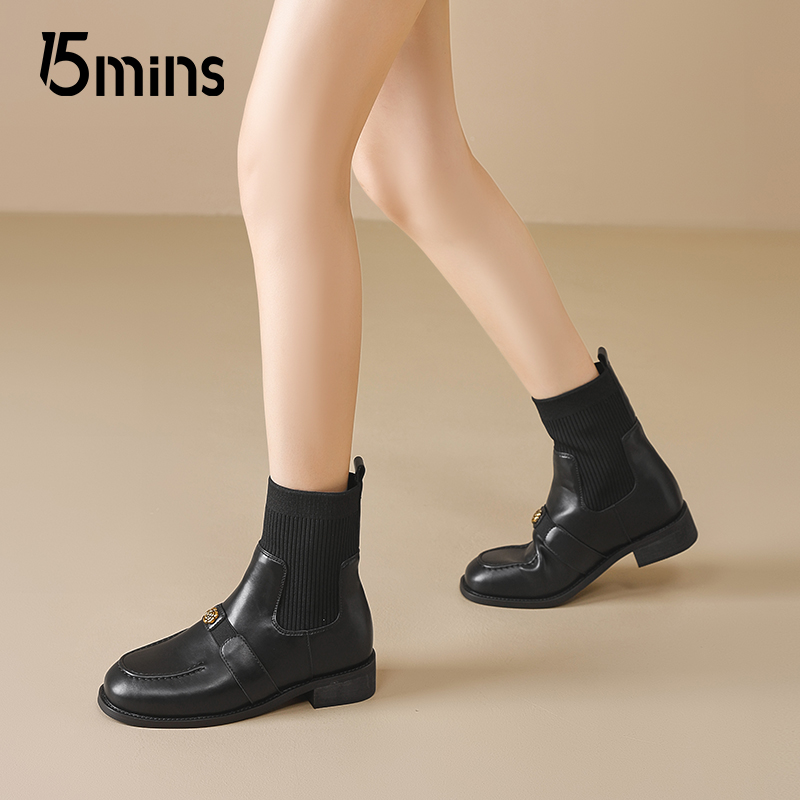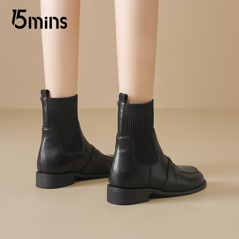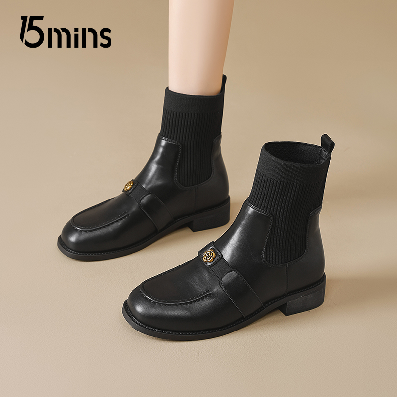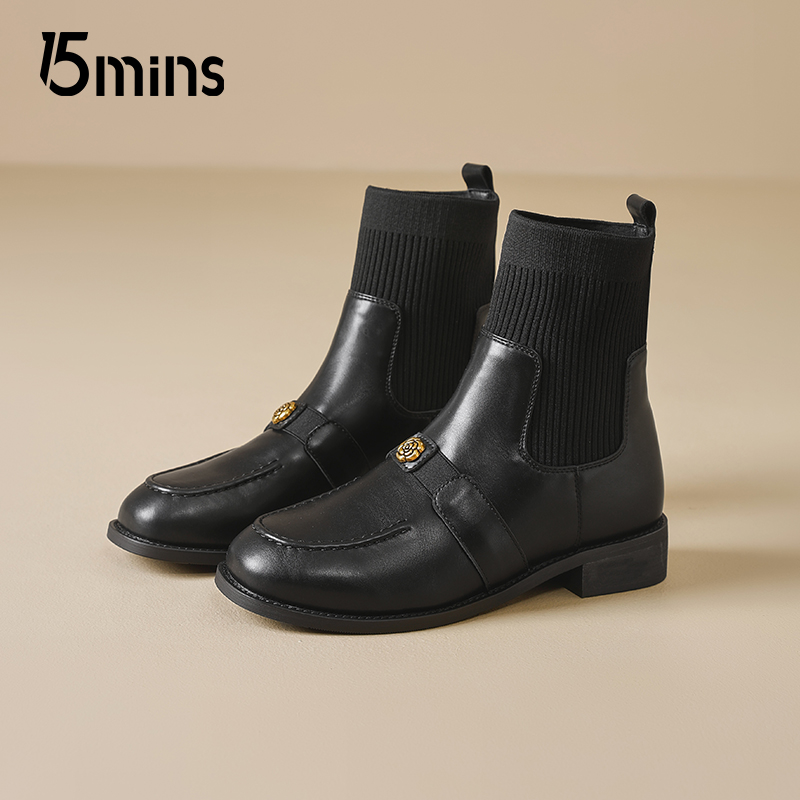 百搭袜靴 复古英伦风短靴时尚 15mins山茶花气质弹力靴2025秋季 新款