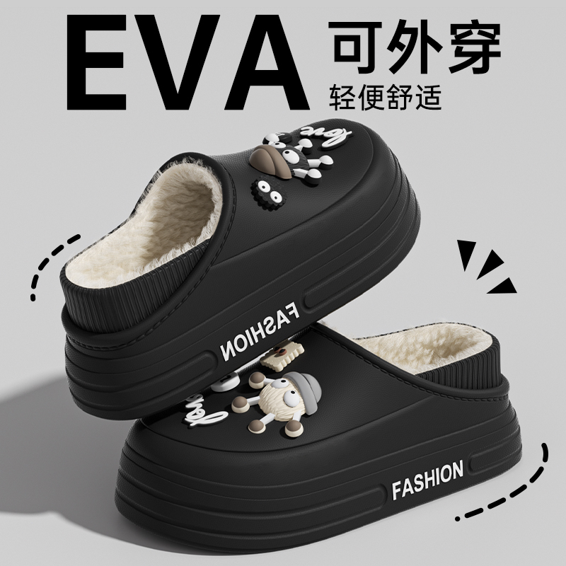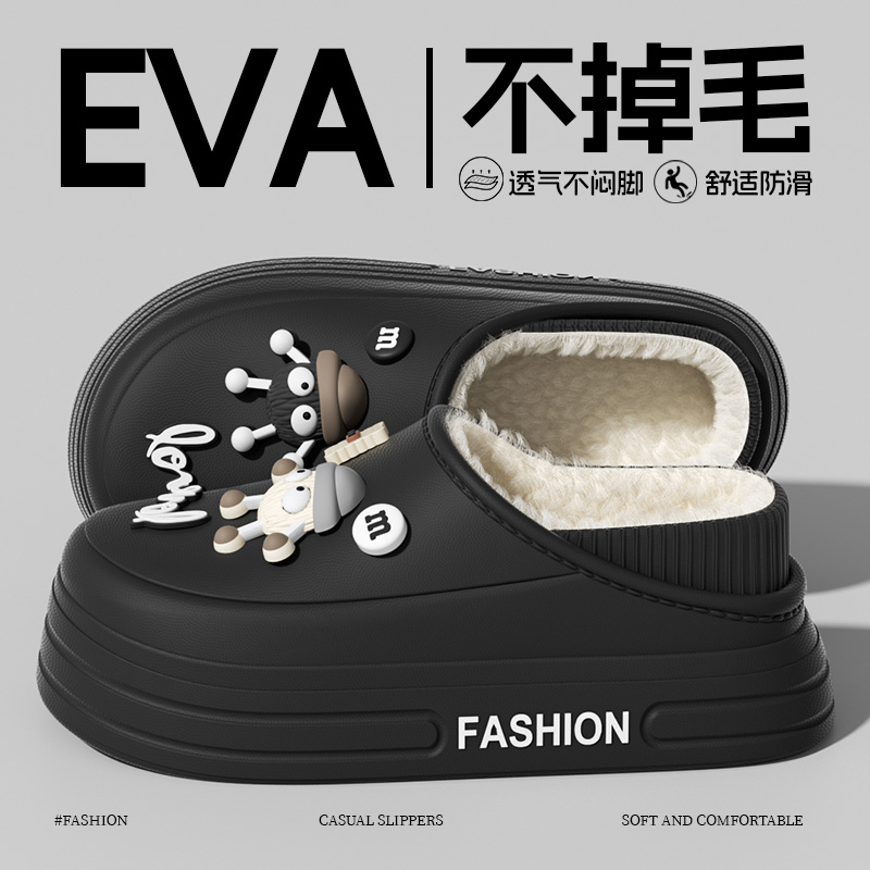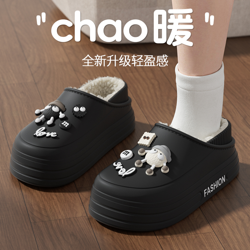 室内家居厚底包跟防水毛绒棉鞋 秋冬季 女 女士2025新款 踩屎感棉拖鞋