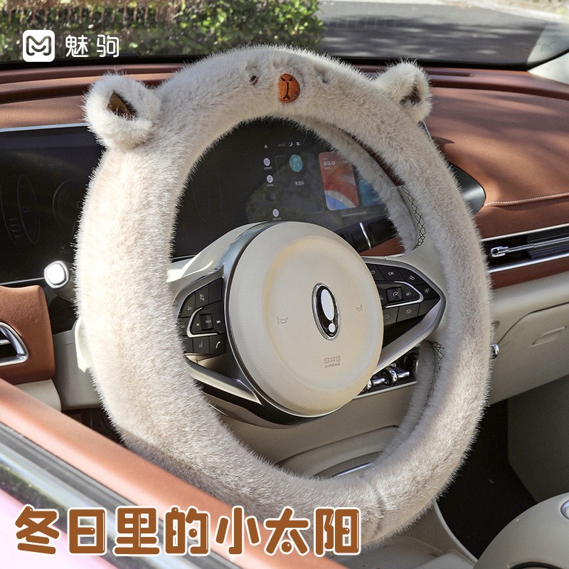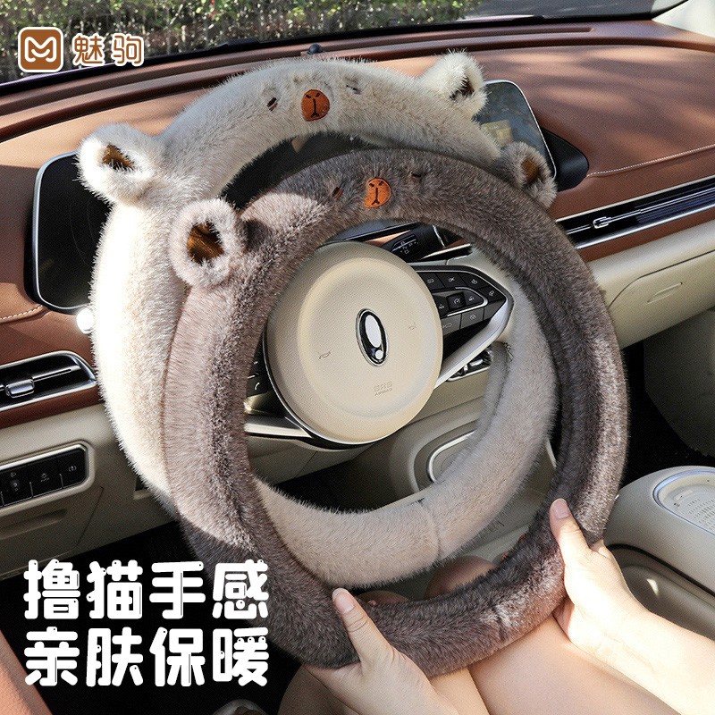 汽车方向盘套冬季 网红方向盘保护套冬天防滑保暖把套 毛绒男女新款
