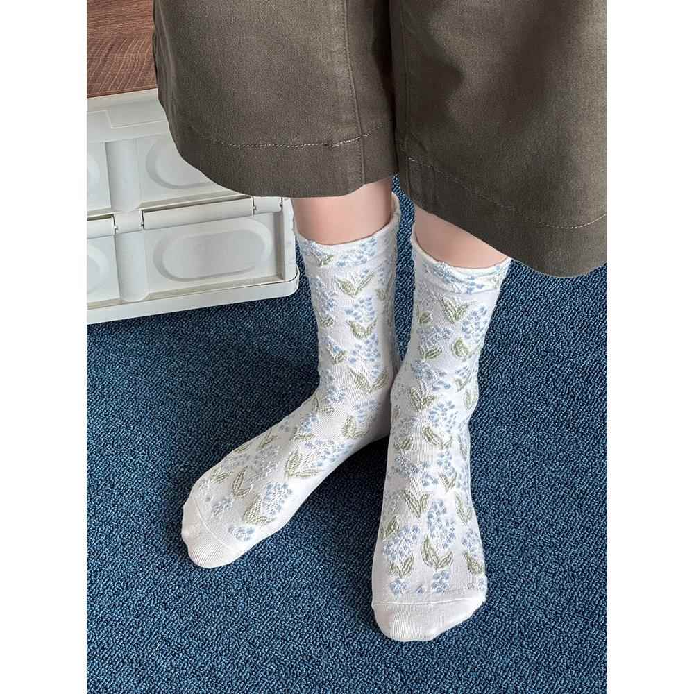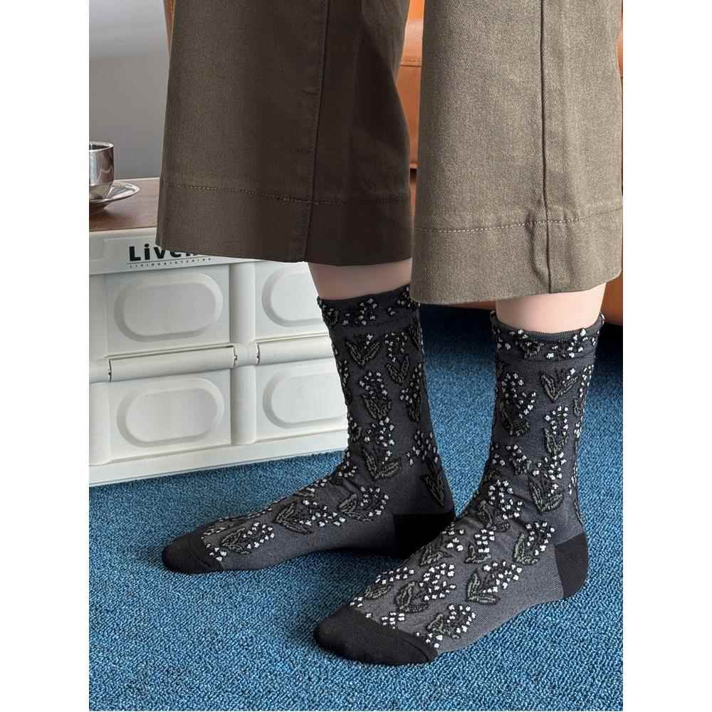袜子女花纹复古立体浮雕中筒袜网红百搭长袜文艺配小皮鞋 堆堆袜潮