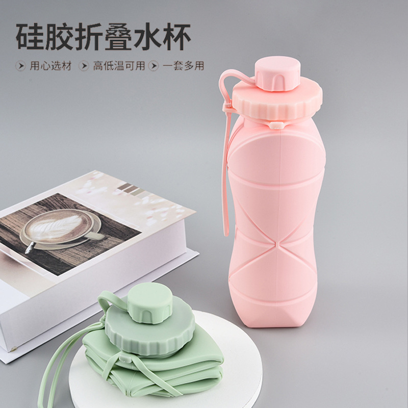 简约硅胶骑行水杯户外露营运动水壶学生便携压缩旅行骑行杯便携
