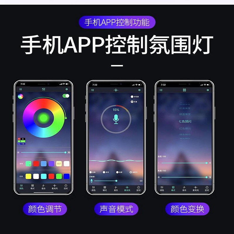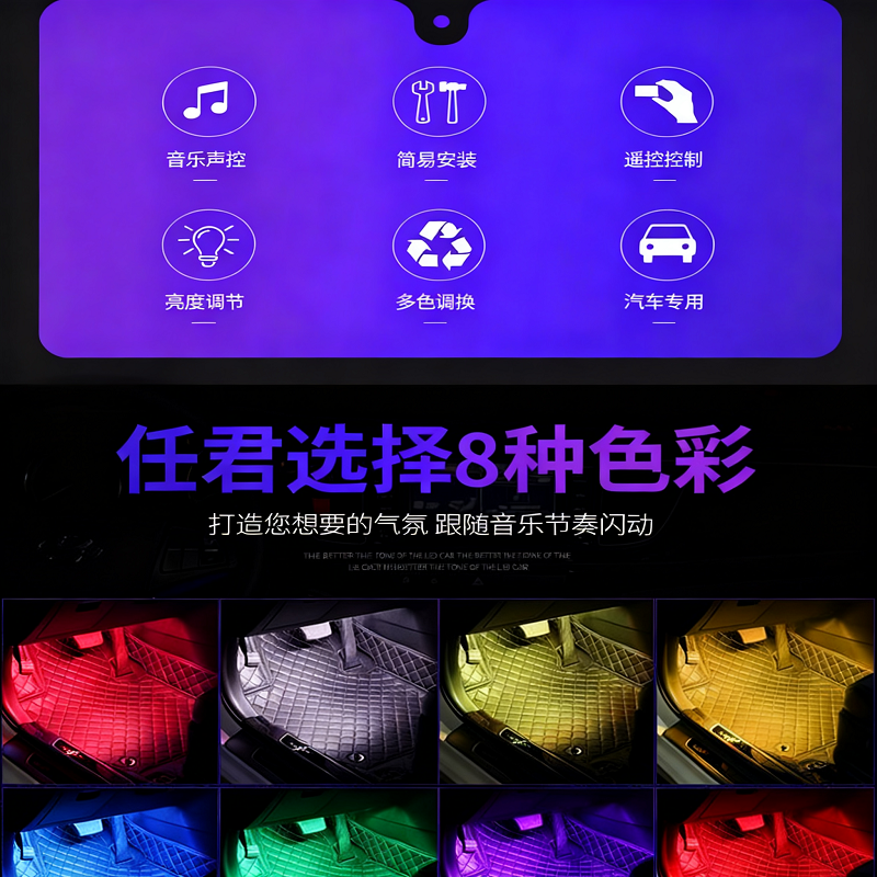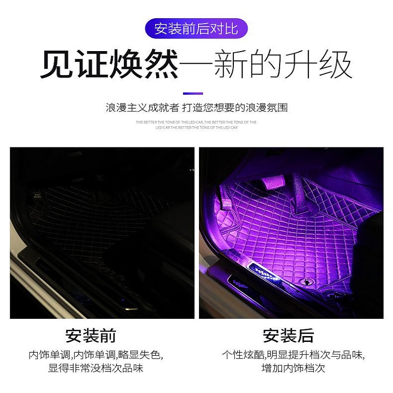 抖音爆款 车载氛围灯led爆闪灯声控汽车脚底氛围灯led内饰改装