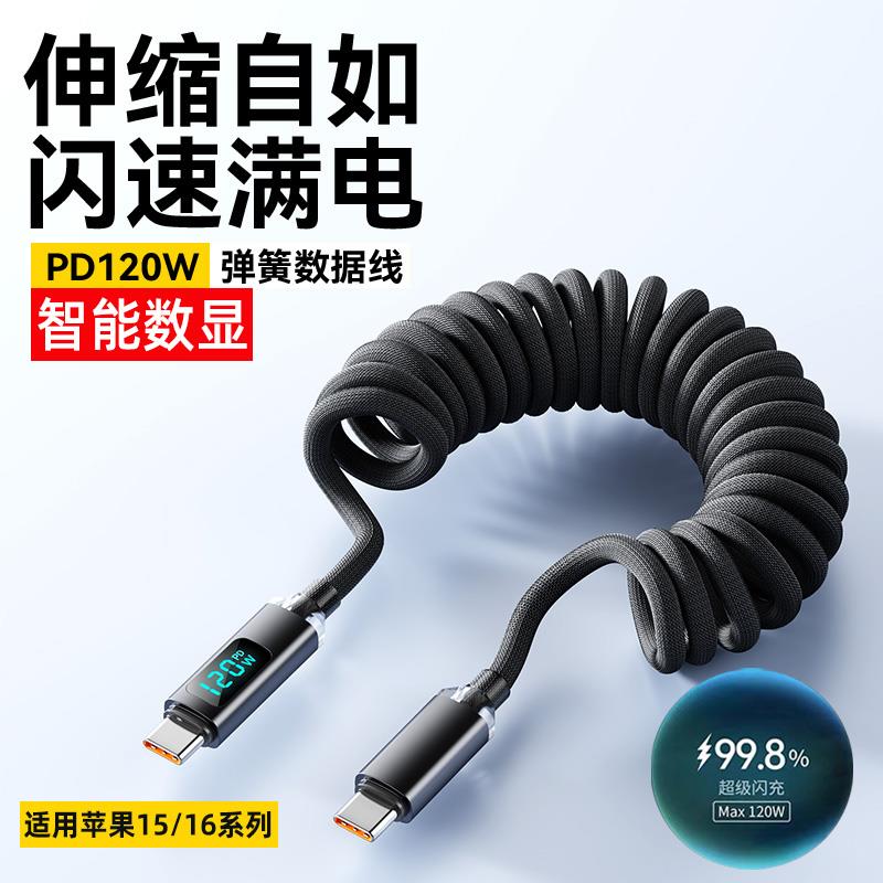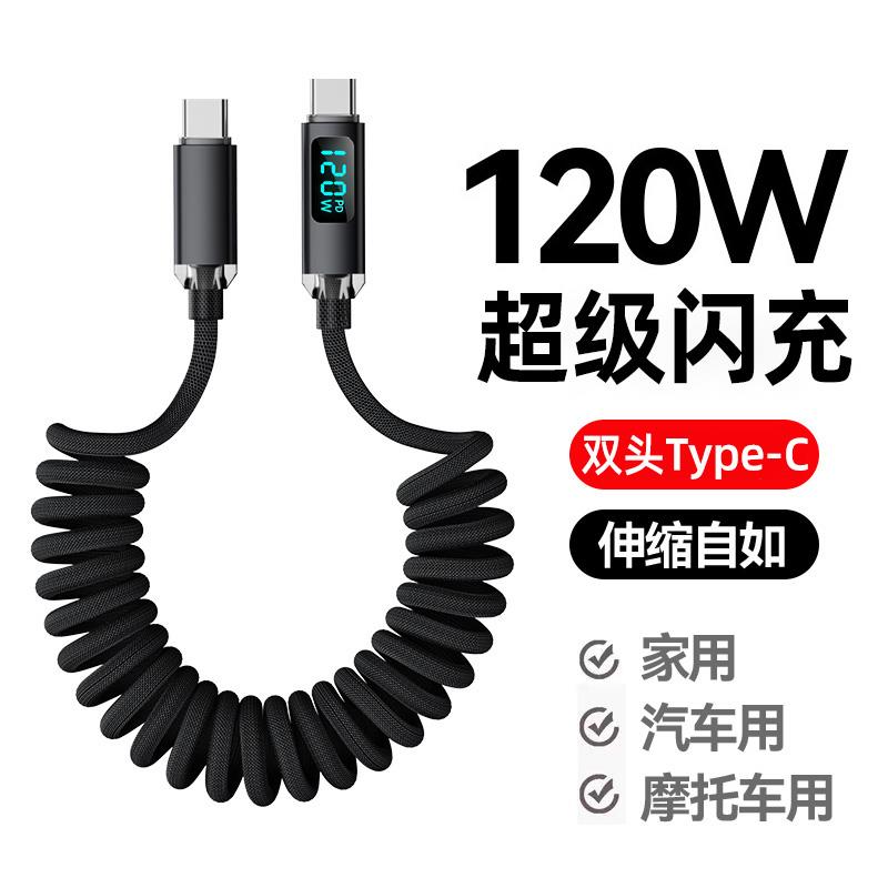c数显弹簧充电线双头pd120w超级闪充适用华为mate70小米苹果15ipad笔记本电脑 适用于麦现双type 日本技术