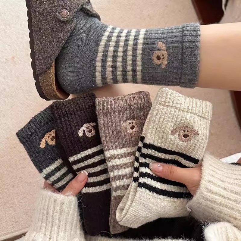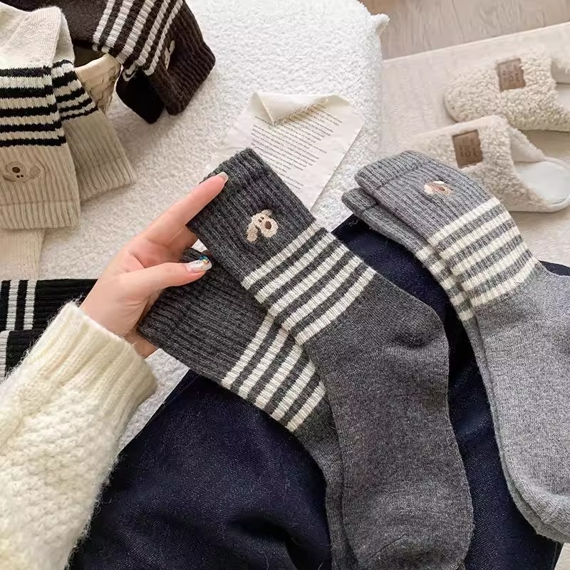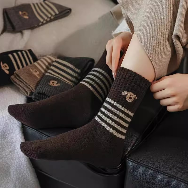 袜子女秋冬款 长袜加厚保暖ins美拉德复古条纹潮百搭冬天外穿长筒