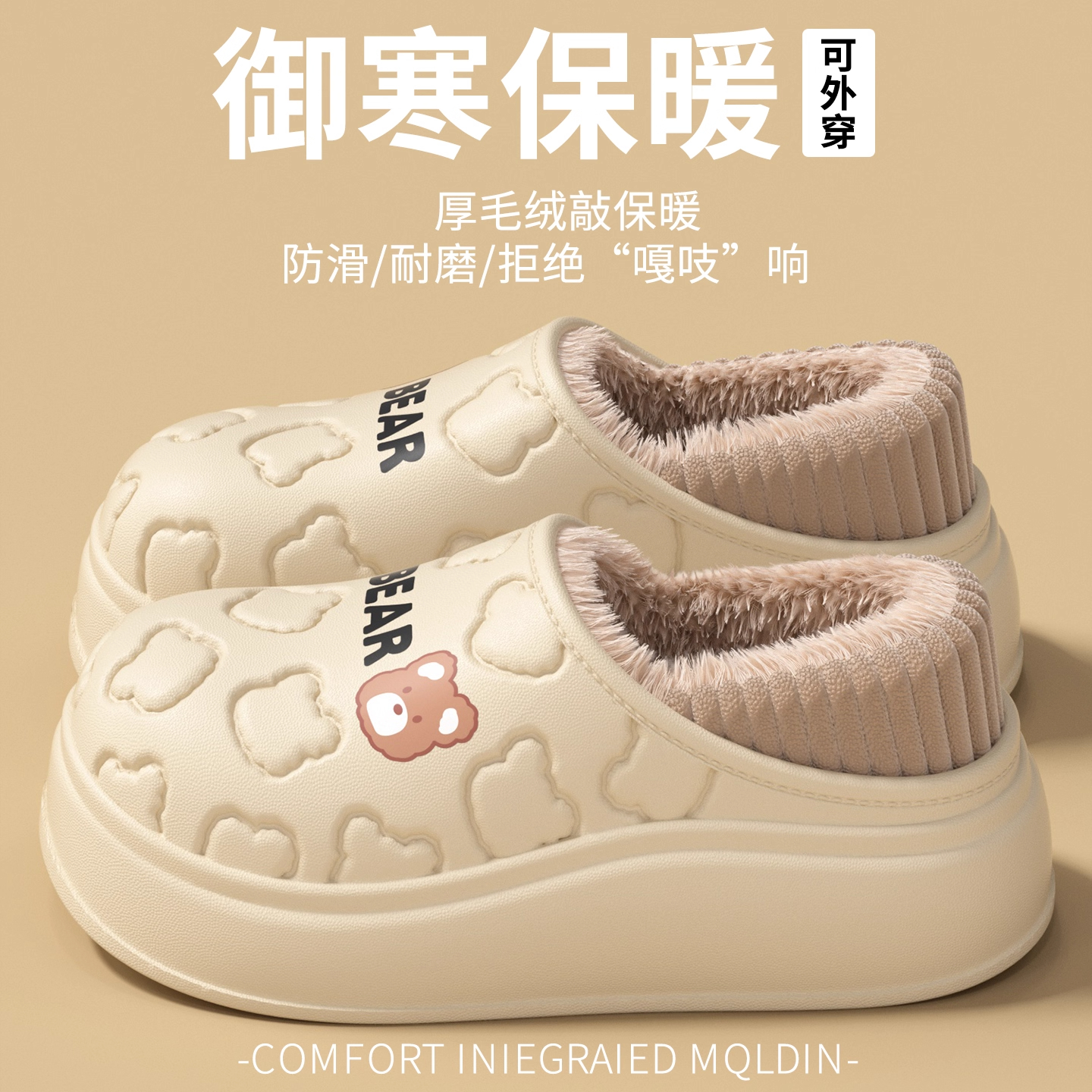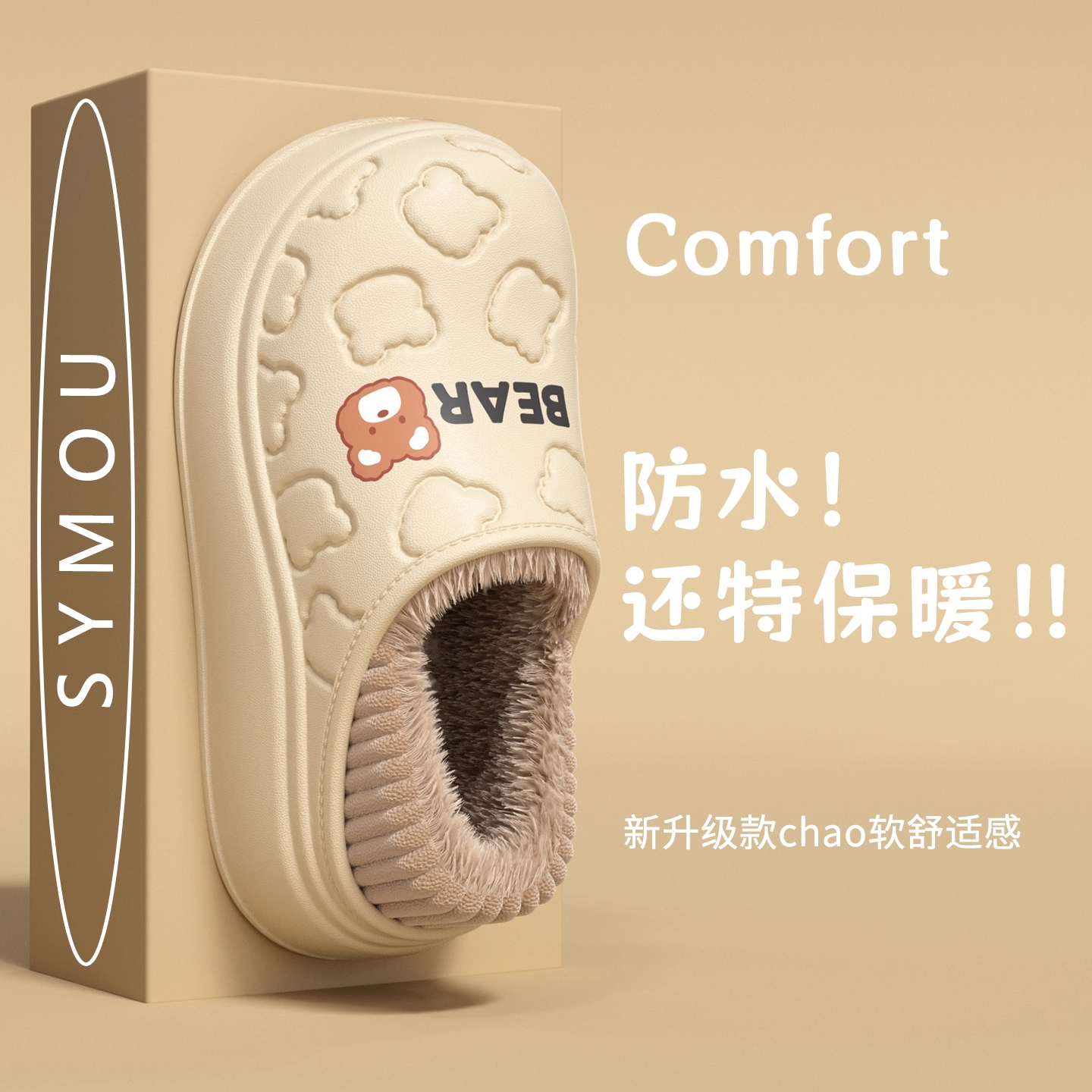 保暖月子加绒毛棉鞋 包跟室内家居2025新款 男 女士秋冬季 防水棉拖鞋