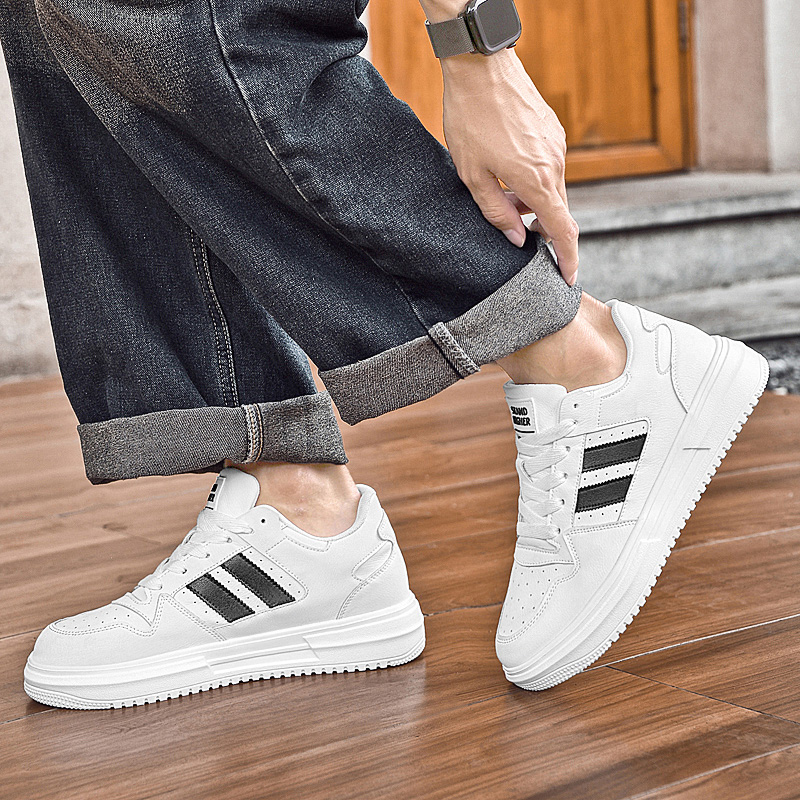 8cm男鞋 秋季 隐形增高厚底小白鞋 真牛皮轻便休闲运动板鞋 增高男鞋