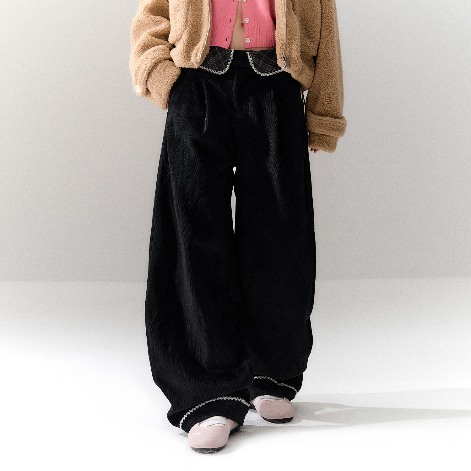 高级宽松bf慵懒垂感直筒加绒休闲阔腿裤 2025新款 子女春秋季 糯米裤