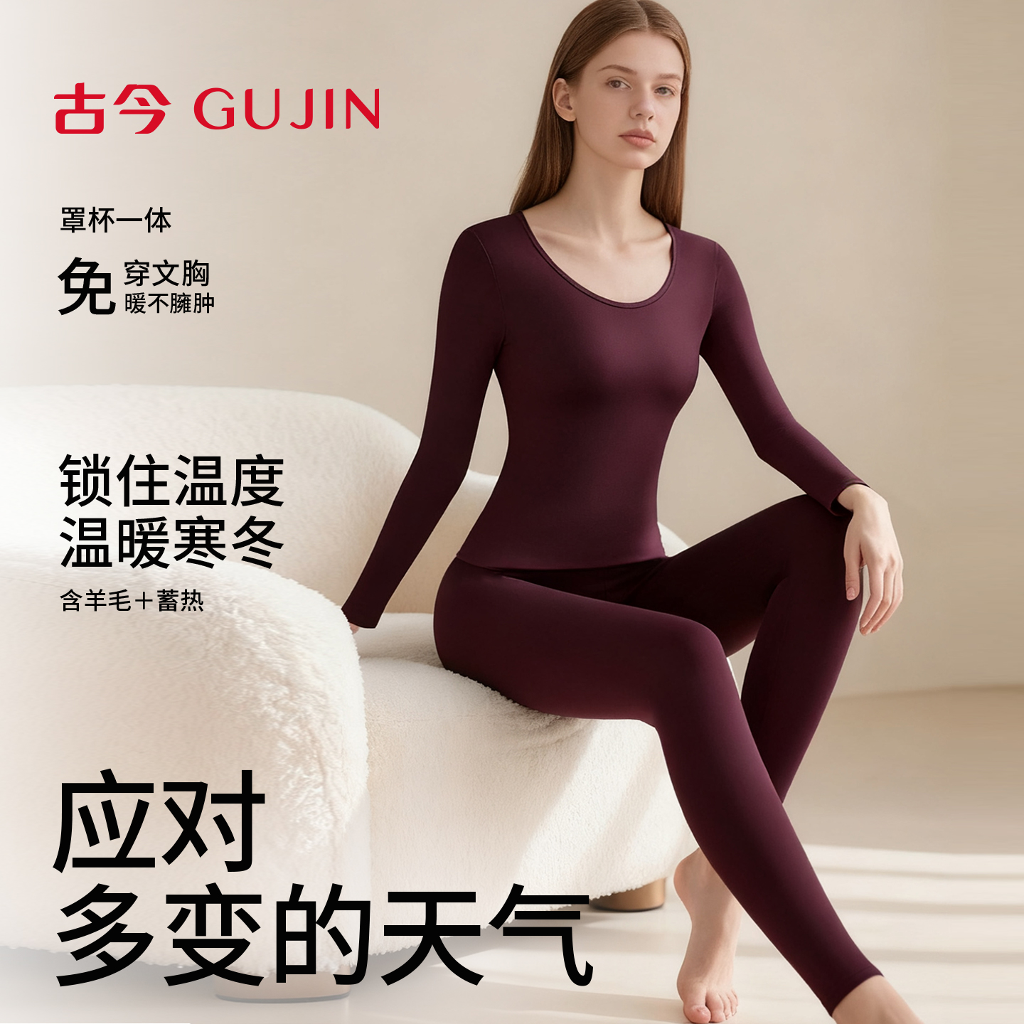 古今保暖内衣女士套装 女柔软舒适 免穿文胸含绵羊毛桑蚕丝秋衣秋裤