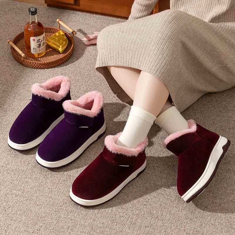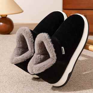 男款 厚底防滑室内家居带后跟加绒保暖老人棉鞋 女士包跟冬季 棉拖鞋