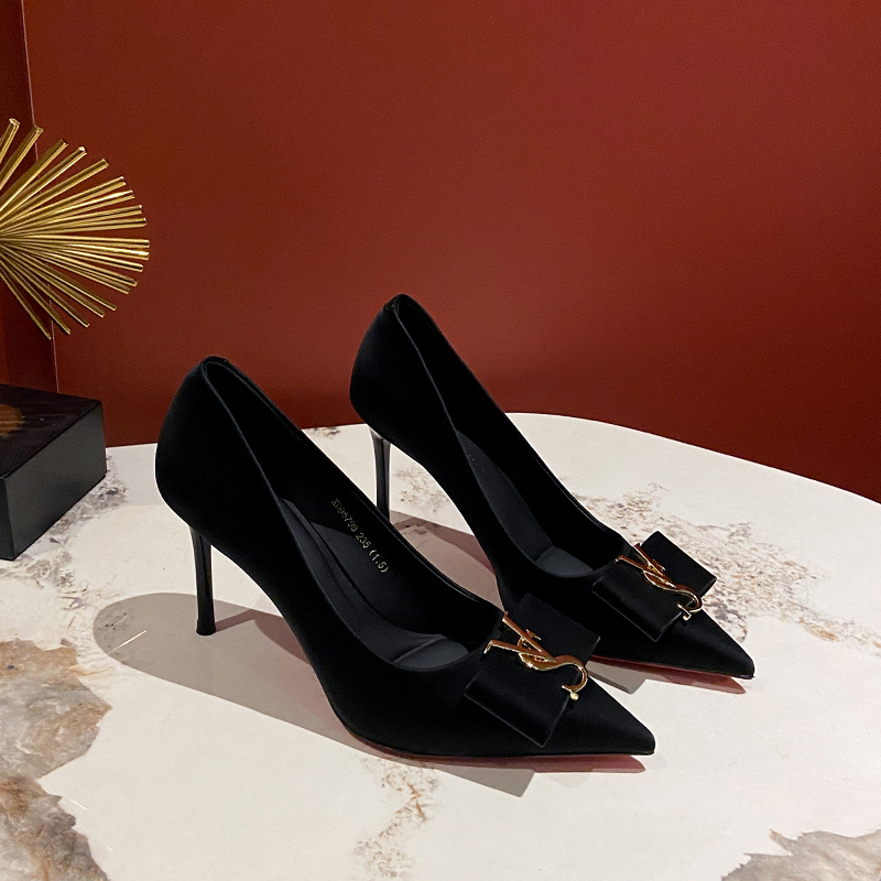 女细跟尖头性感黑色单鞋 2025年春秋季 高跟鞋 少女网红钻扣法式 新款