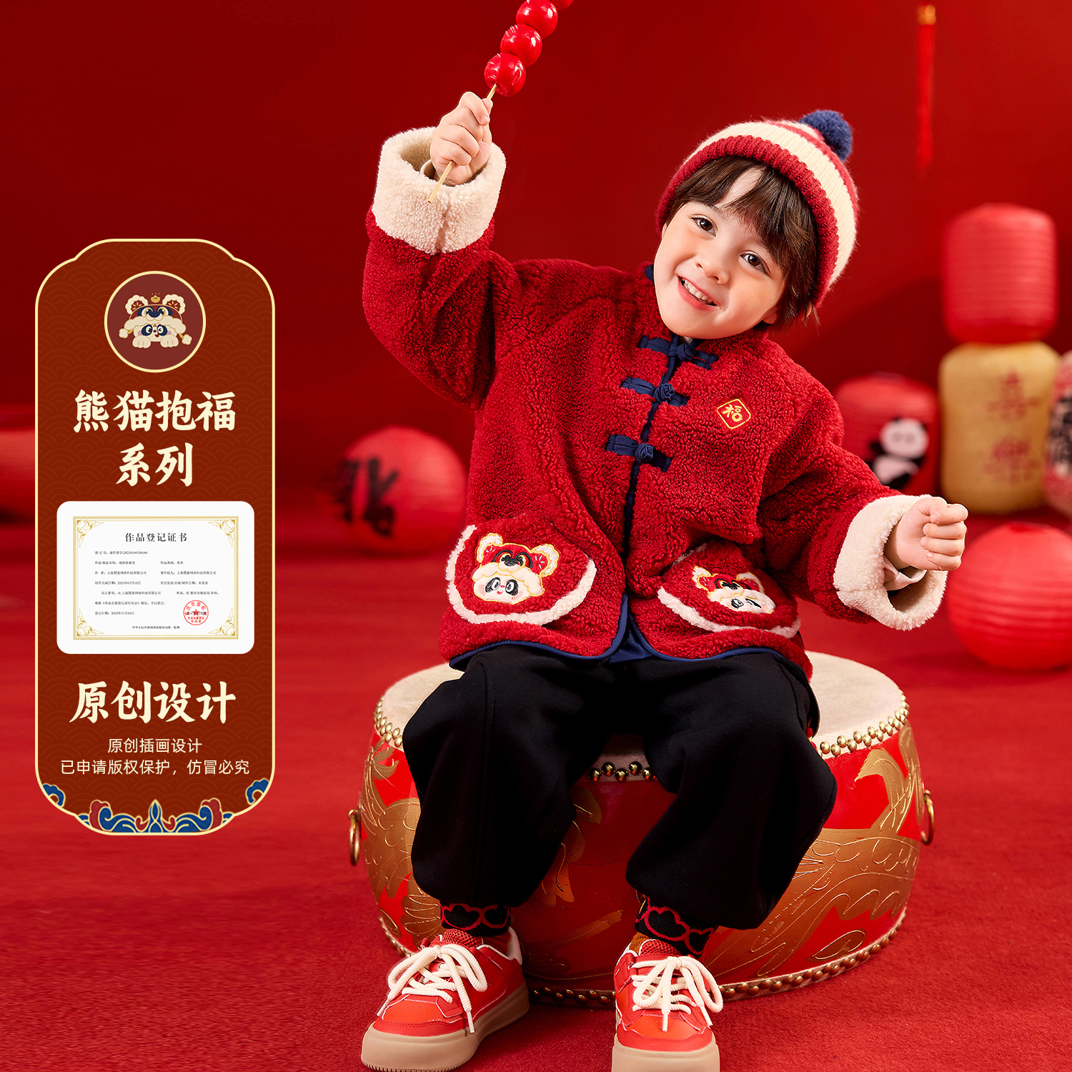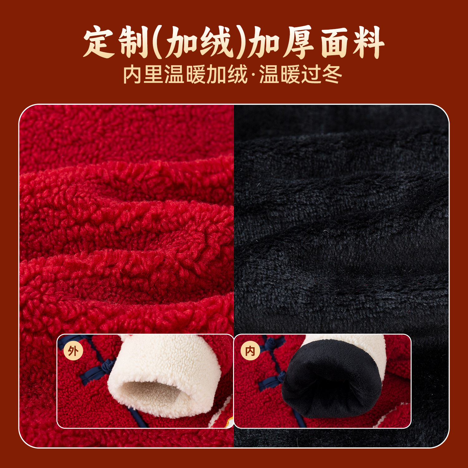 嘟嘟家男童外套宝宝加绒上衣儿童冬季 女童新年衣服红色 拜年服新款