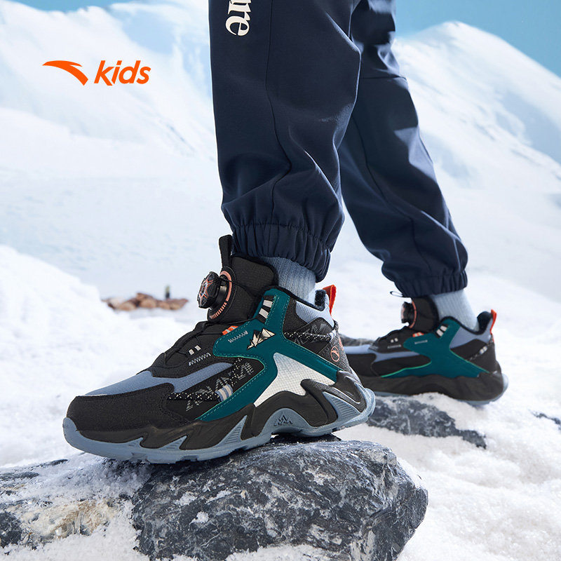 旋钮扣加绒雪地靴运动户外棉鞋 安踏儿童鞋 新款 2025冬季 二棉鞋
