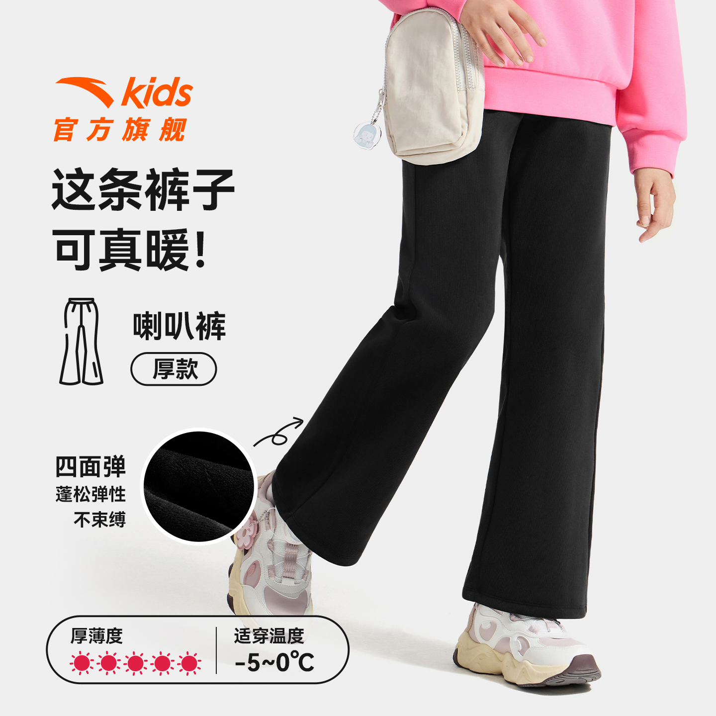 女童加绒加厚裤 灯芯绒喇叭裤 子秋冬2025冬季 儿童长裤 新款 安踏童装