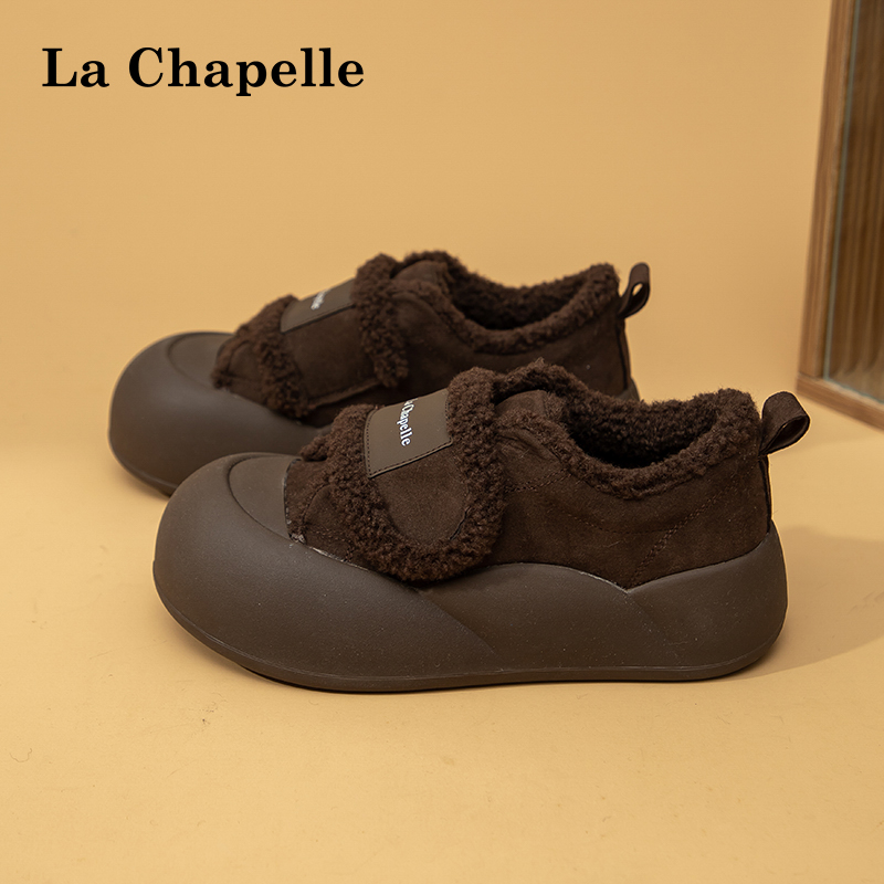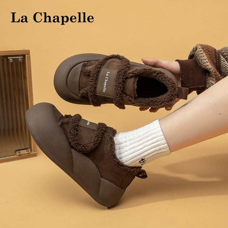 防滑保暖二棉鞋 魔术贴加绒板鞋 新款 拉夏贝尔厚底雪地靴女2025冬季