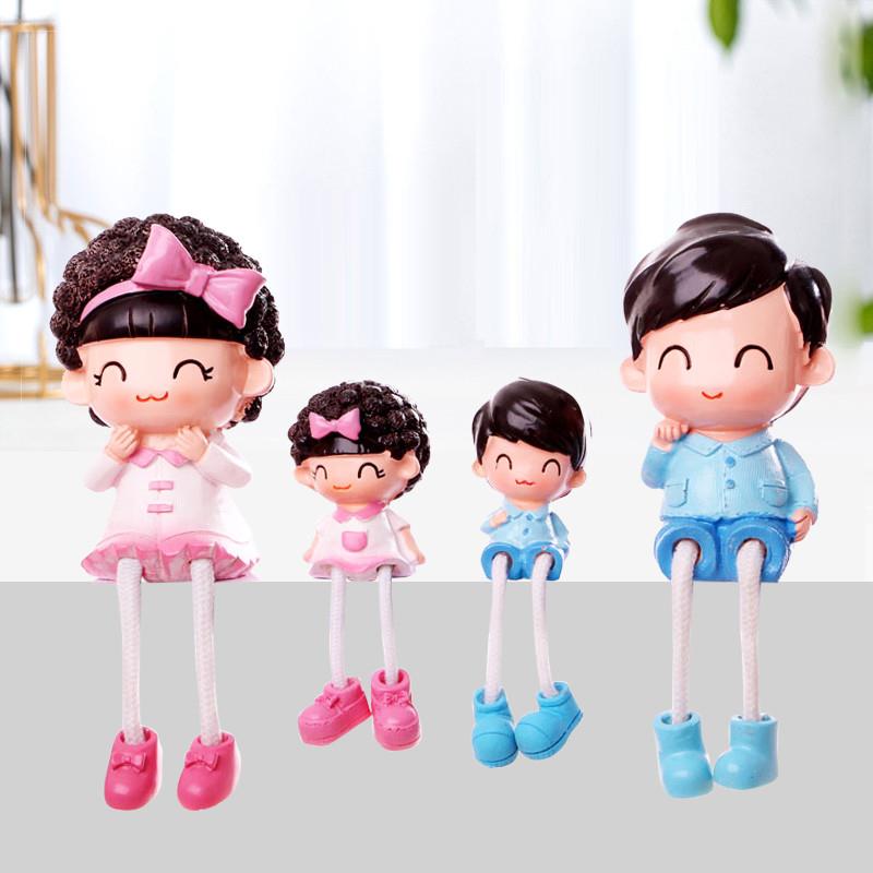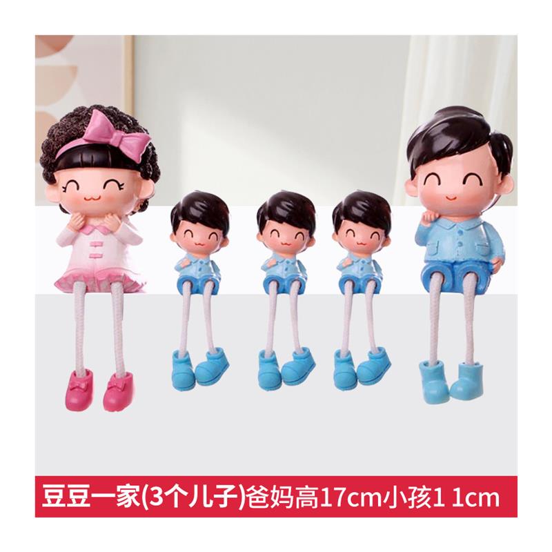 好货创意家居客厅酒柜书架卧室房间小装 饰品摆件吊脚娃娃一家树脂