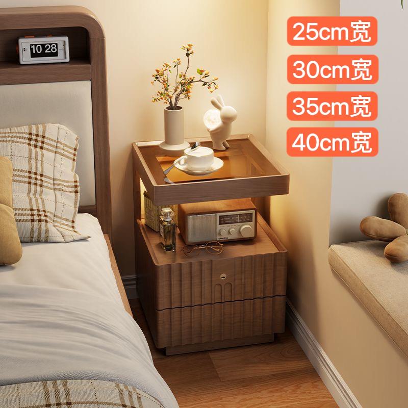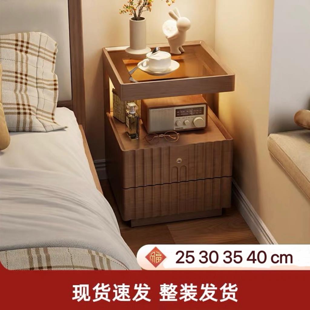 实木床头柜带锁简约现代家用卧室床头收纳柜储物柜小型床边置物架
