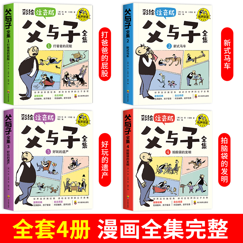 适合小学生一年级下册看 完整版 二年级上册课外书必读正版 父与子书全集彩色注音版 漫画书看图讲故事儿童绘本阅读书籍三Q 全套4册