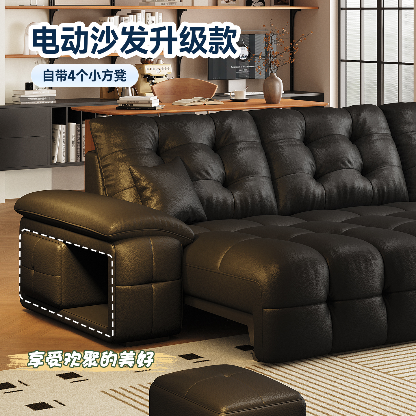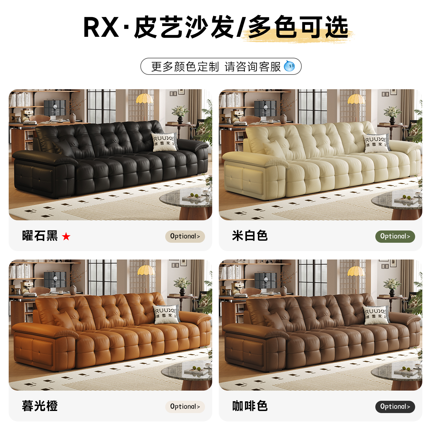 瑞雪大象耳朵功能沙发调节可伸缩零靠墙头层牛皮中古风意式 沙发床