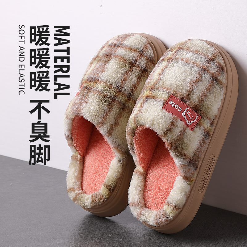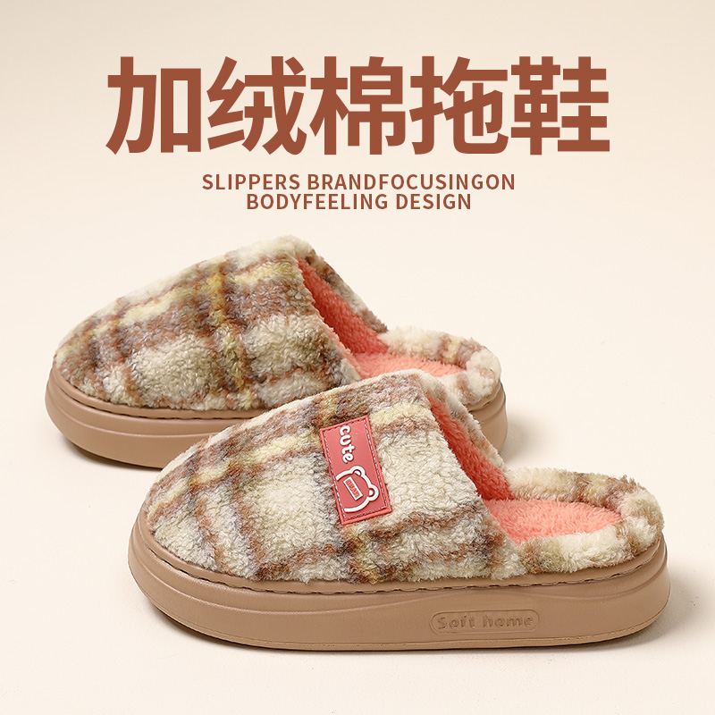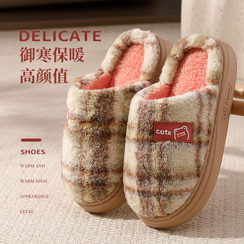 清新可爱雪莉玫棉拖鞋 少女居家格子包头拖防滑百搭外穿毛毛拖 冬季