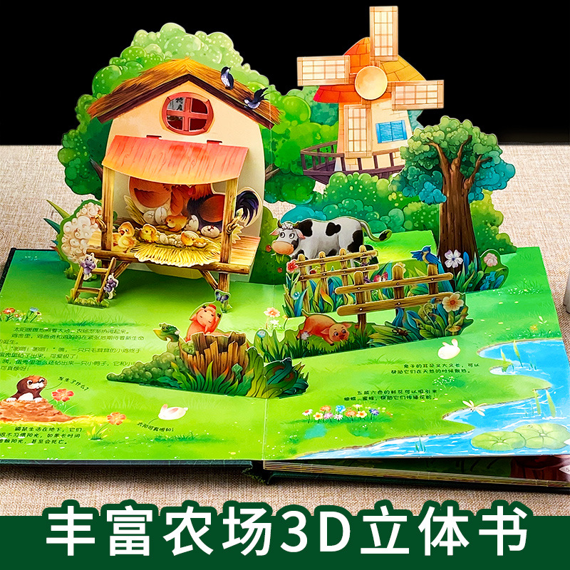 奇妙自然生命立体书 小鸭子儿童3d翻翻书婴幼儿早教绘本D 农场里