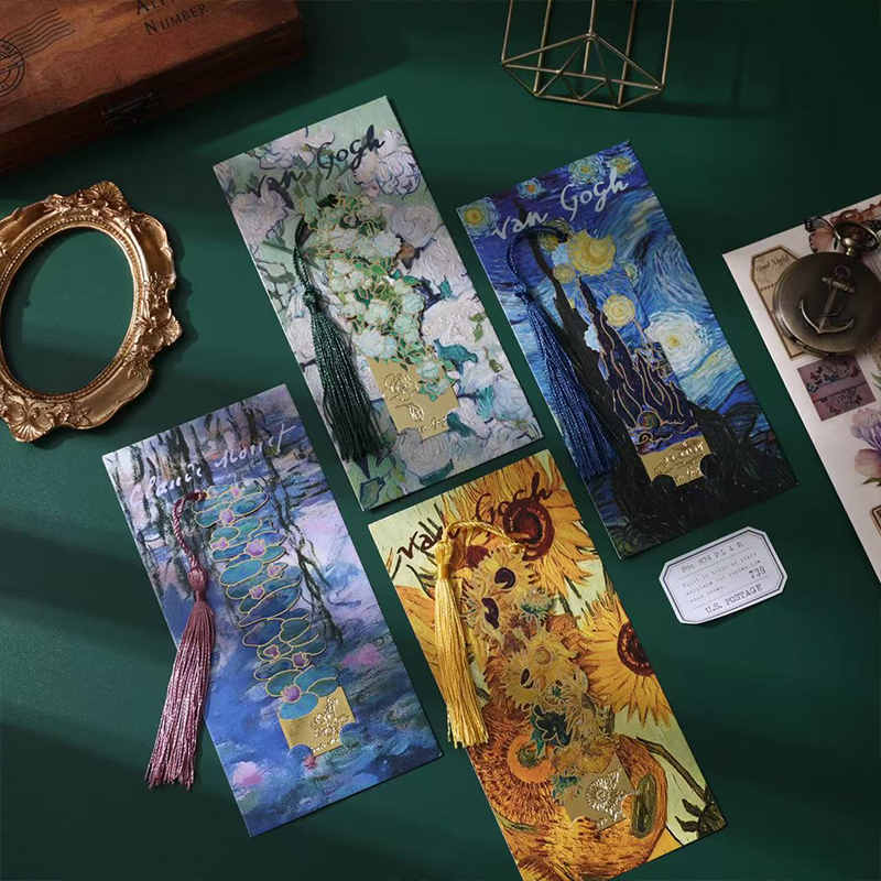 复古金属书签梵高油画创意精致镂空流苏书页夹学生阅读标签高颜值节日小礼品儿童文具奖品礼物高档生日伴手礼