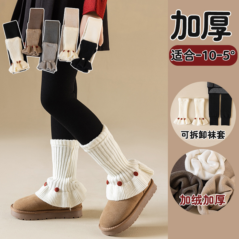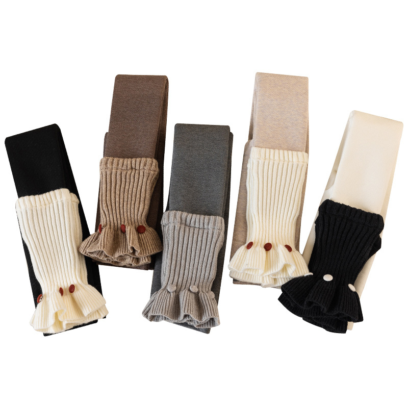 外穿保暖连裤 冬季 子女童拼接袜套打底裤 加绒加厚儿童花边裤 袜 新款