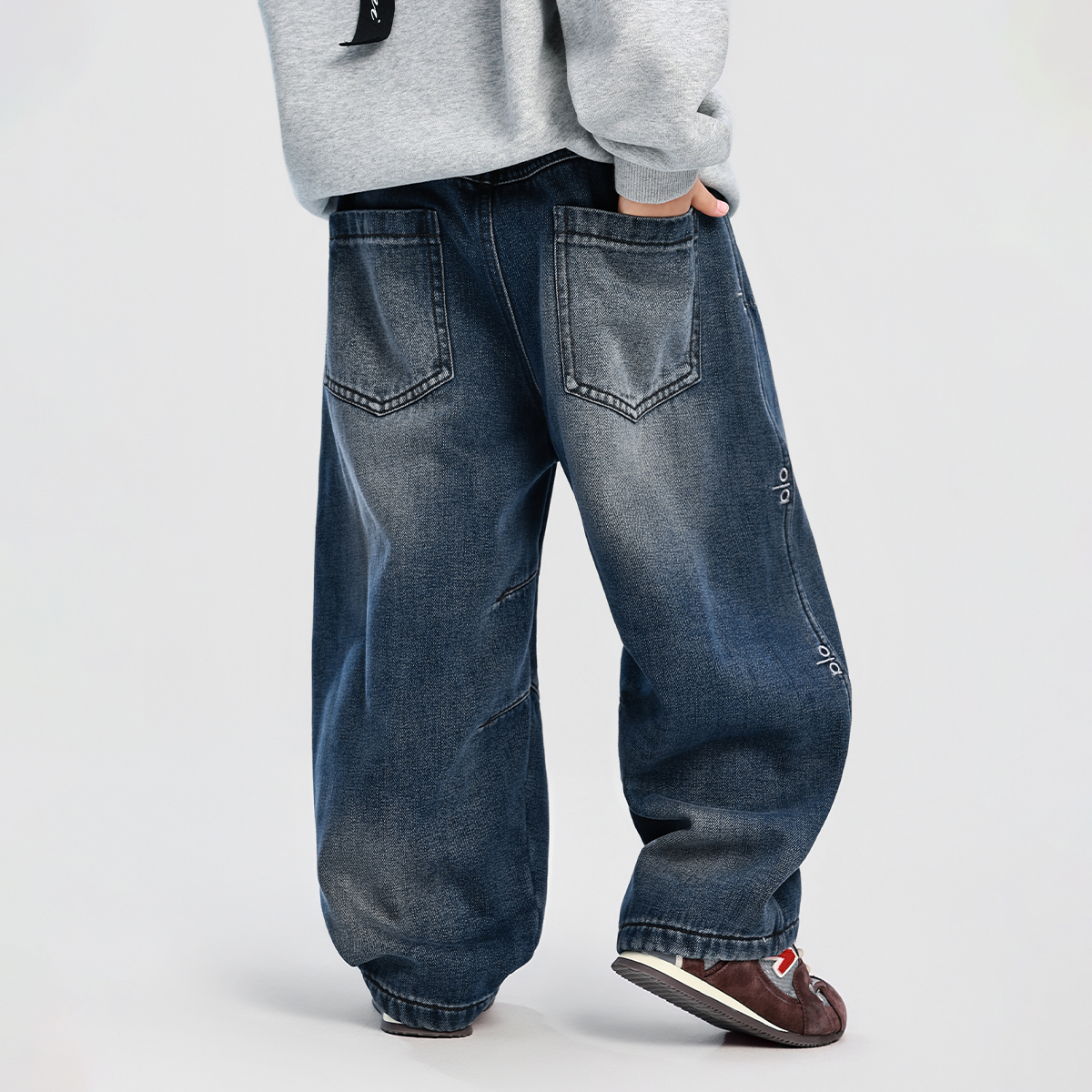 儿童中大童加厚一体绒男孩长裤 男童加绒牛仔裤 秋冬款 2025新款 冬装