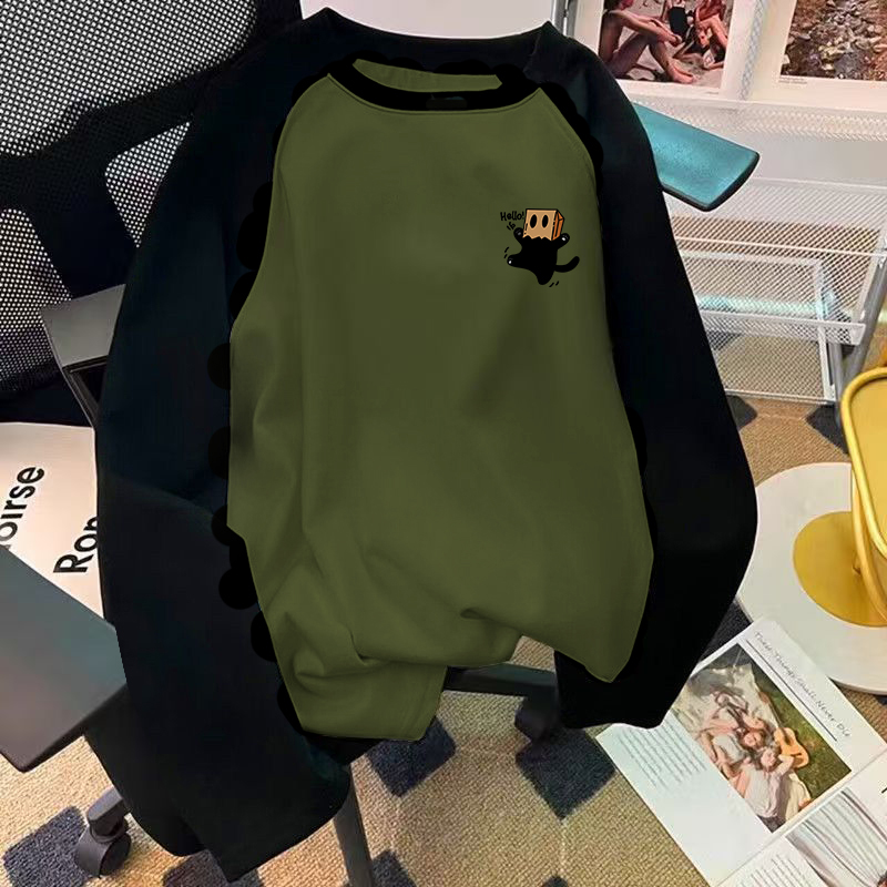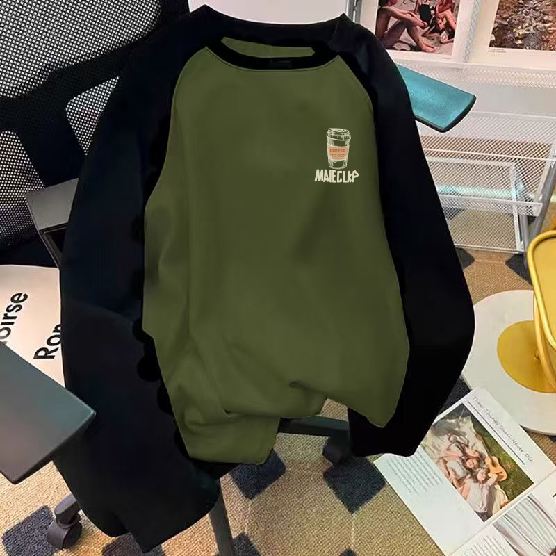 保暖加绒加厚拼接打底衫 冬季 上衣服 T恤男士 重磅德绒插肩撞色长袖