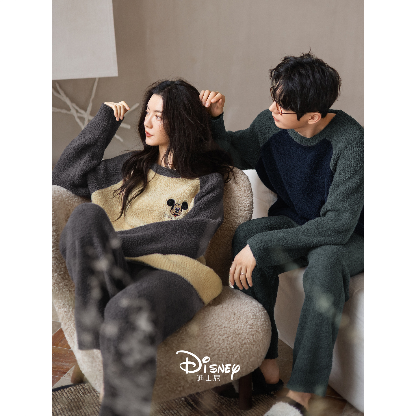 可爱米奇套装 迪士尼情侣睡衣女款 家居服男大码 保暖半边绒厚款 冬季