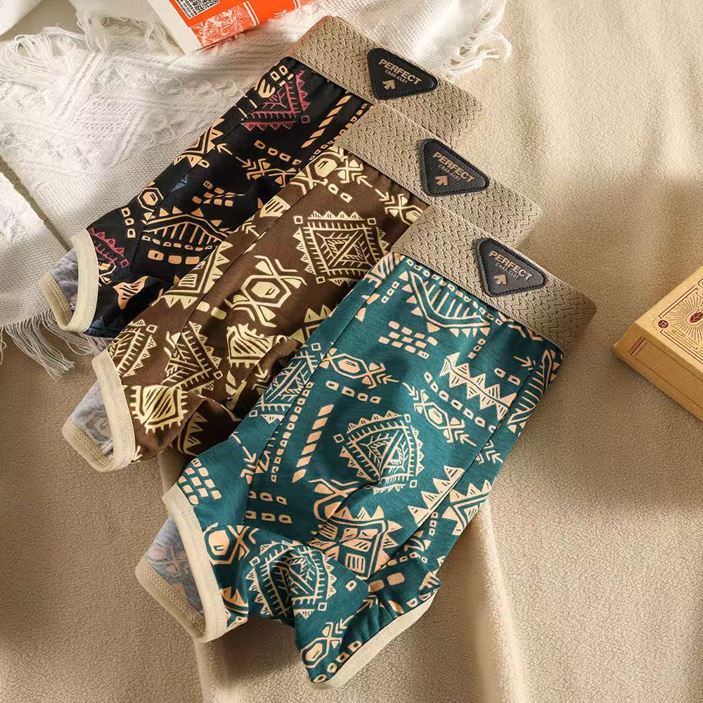 复古民族风男士 男生短裤 内裤 潮流个性 衩 纯棉舒适透气四平角裤 美式