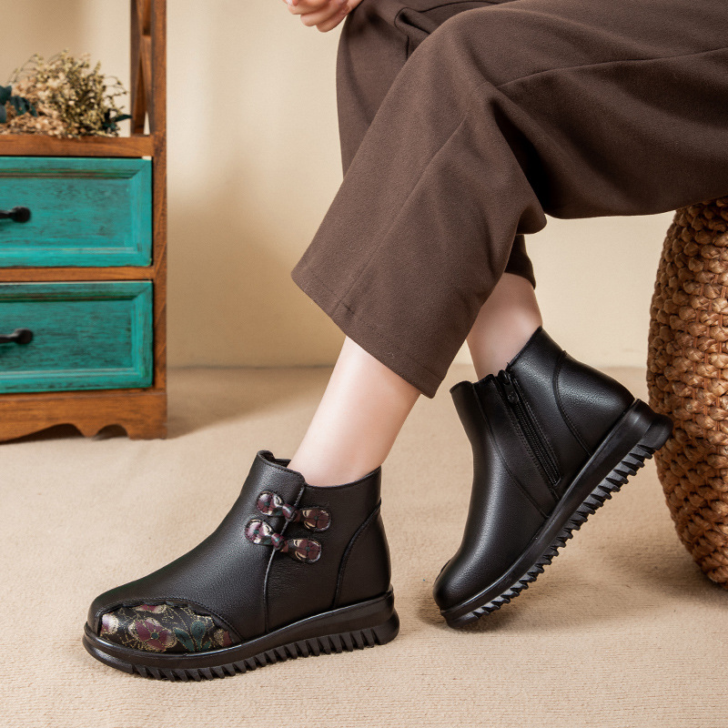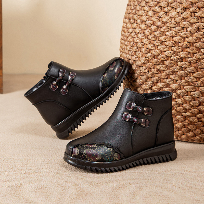 加绒保暖皮鞋 皮毛一体妈妈鞋 防滑老人短靴中老年女鞋 棉鞋 中年 冬季