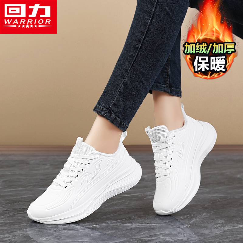 运动纯白色百搭保暖老爹鞋 回力女鞋 初中生跑步大码 加绒二棉鞋 冬季