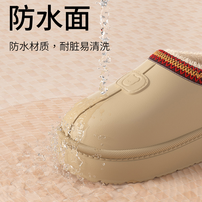 防水防滑软底舒适御寒居家外穿情侣棉拖鞋 女时尚 冬季 简约增高棉鞋