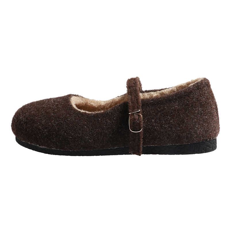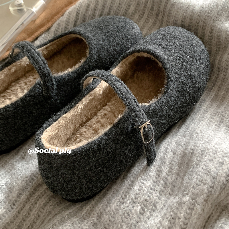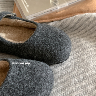 法式 勃肯鞋 玛丽珍毛毛鞋 秋冬外穿加绒保暖棉单鞋 女 混色高级灰