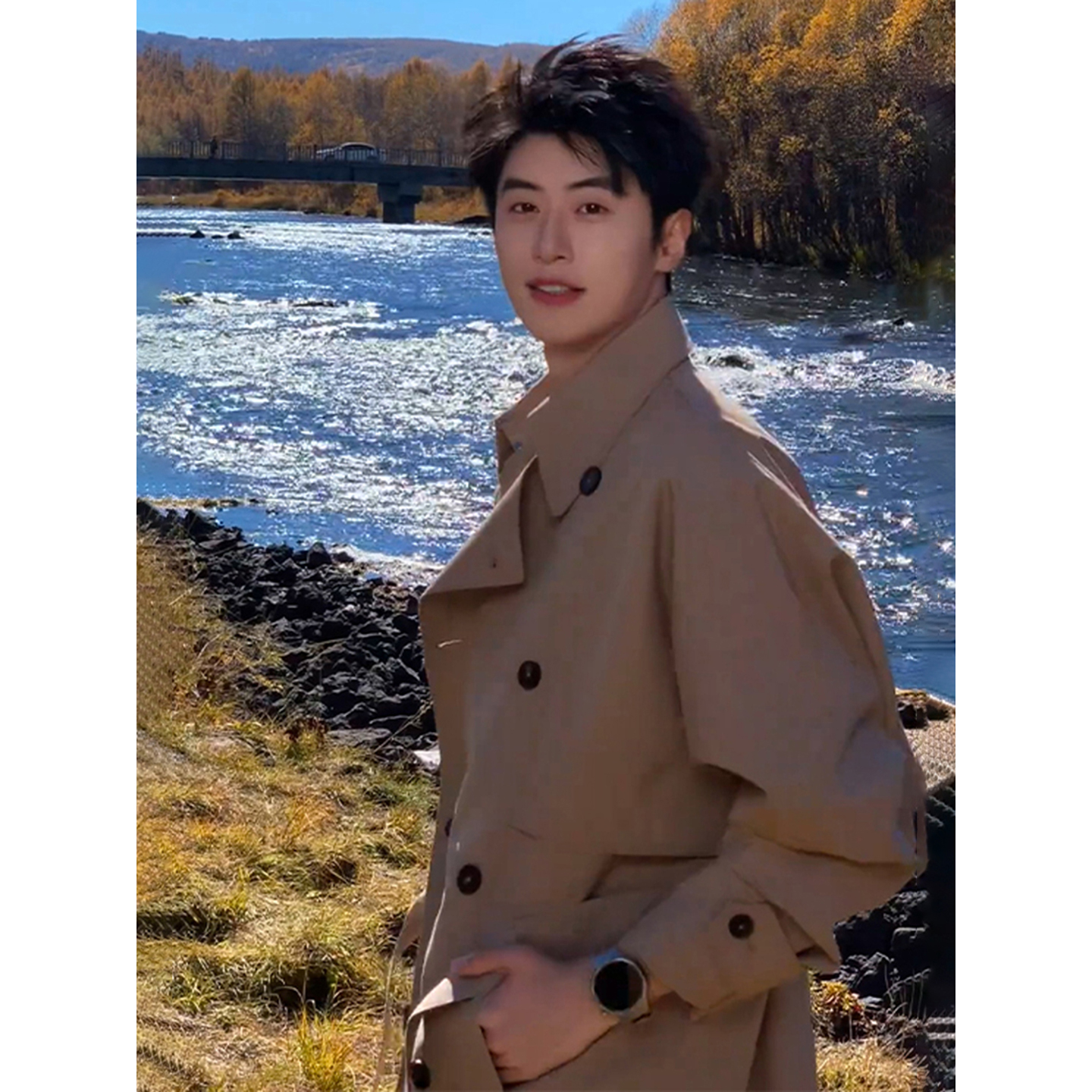 储格 上衣老钱高级感猎装 2025新款 春秋季 大衣外套 风衣男中长款