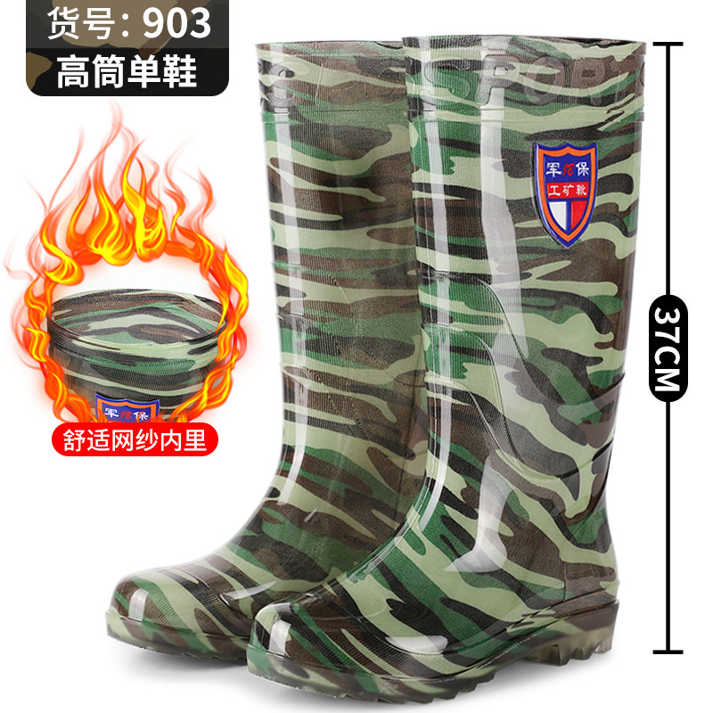 男工地雨靴中筒厨房低筒水靴 牛筋底防水防滑雨鞋 男士 军保高筒水鞋
