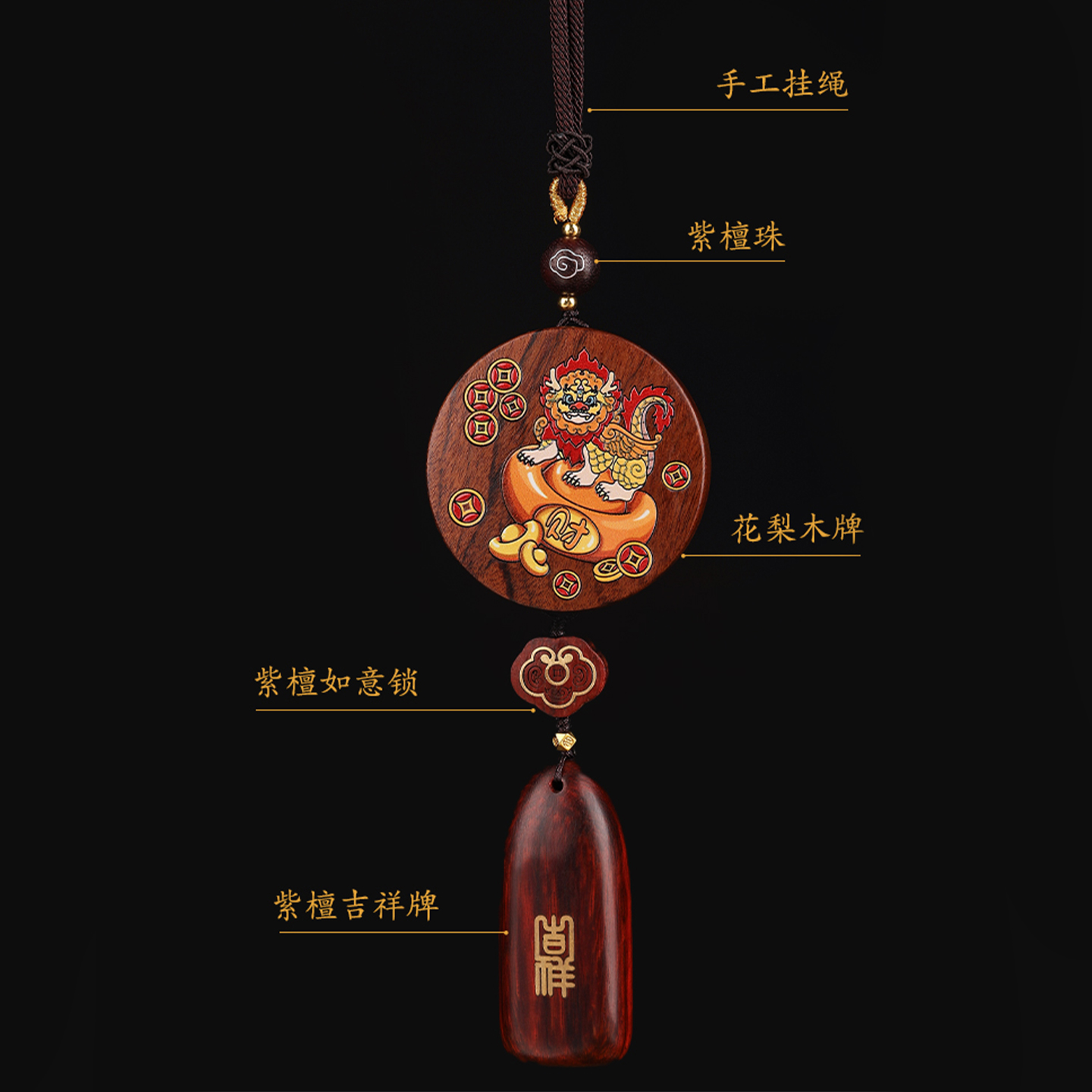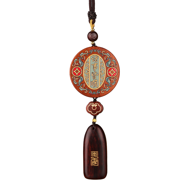 出入平安汽车挂件高档檀木花梨车内吊饰品招财貔貅后视镜挂饰男士