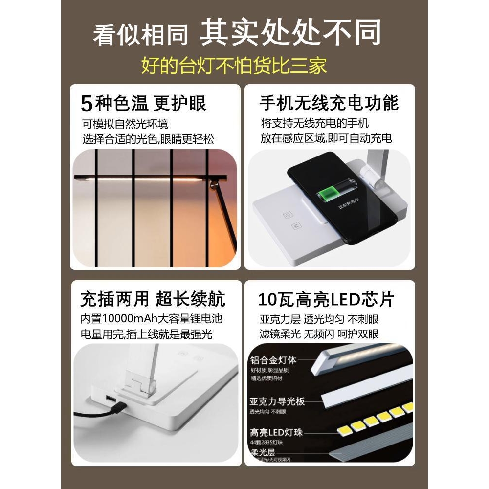 小米米家充电台灯超长续航住校宿舍护眼灯学习手机无线学生折叠