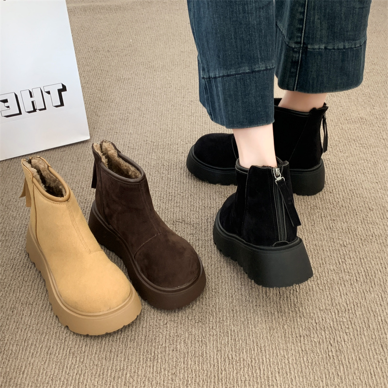 短靴子 加绒马丁靴保暖棉鞋 厚底增高小个子雪地靴女2025秋冬季 新款