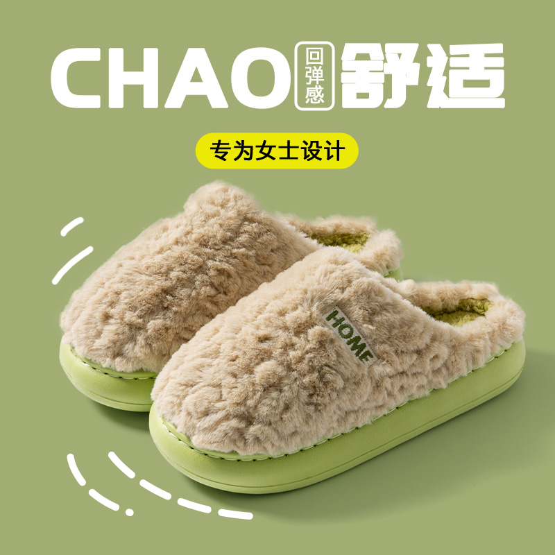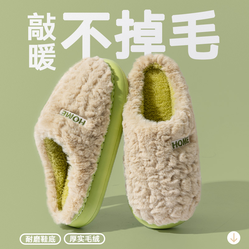 毛毛绒室内家居保暖鞋 厚底防滑2025新款 子居家 女士秋冬季 棉拖鞋