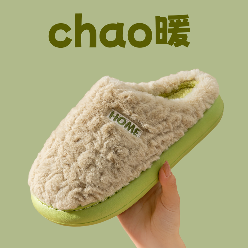 月子室内家居家防滑厚底踩屎感毛毛绒保暖情侣男士 棉拖鞋 女秋冬季