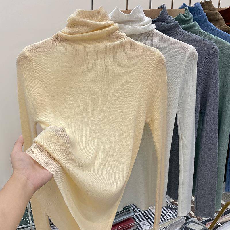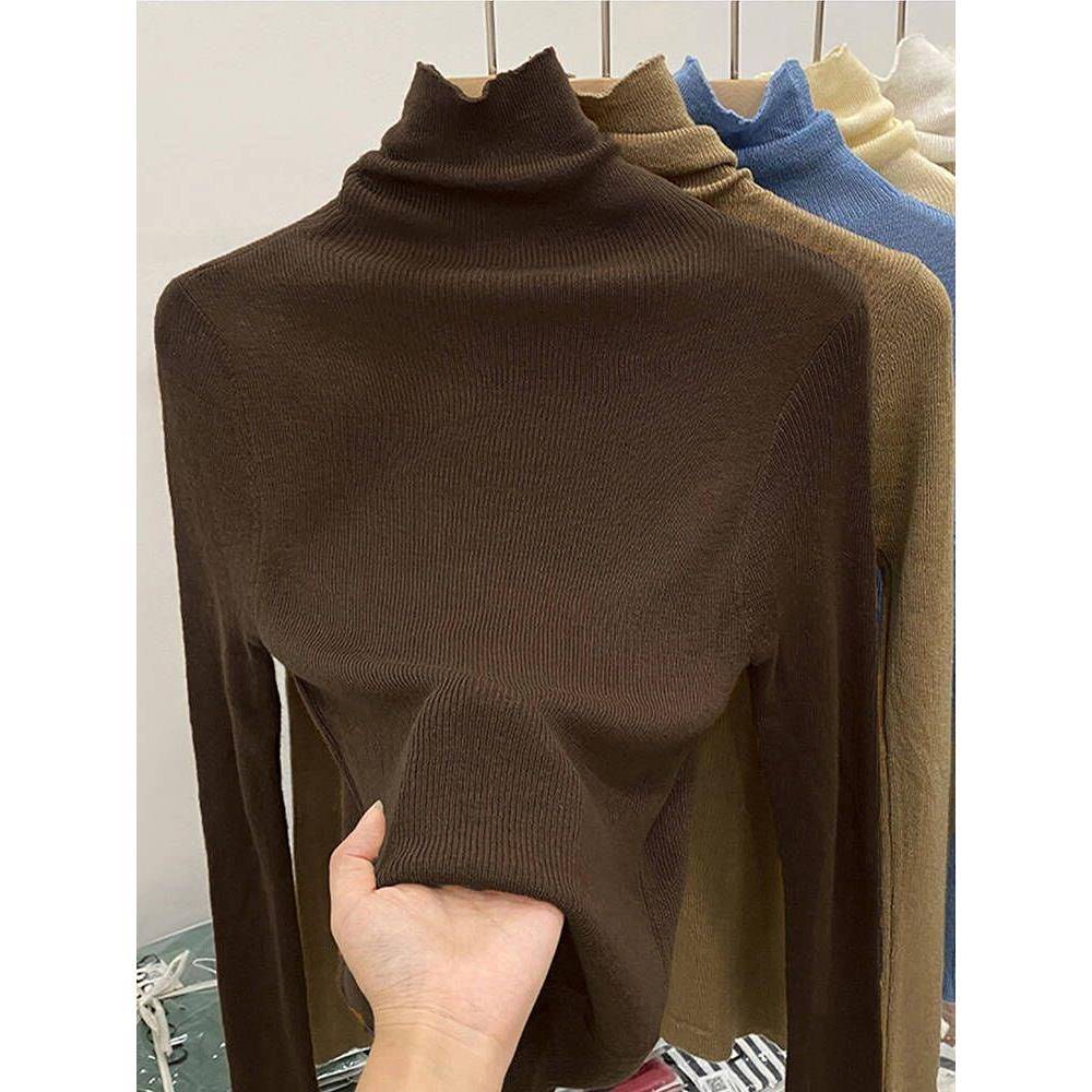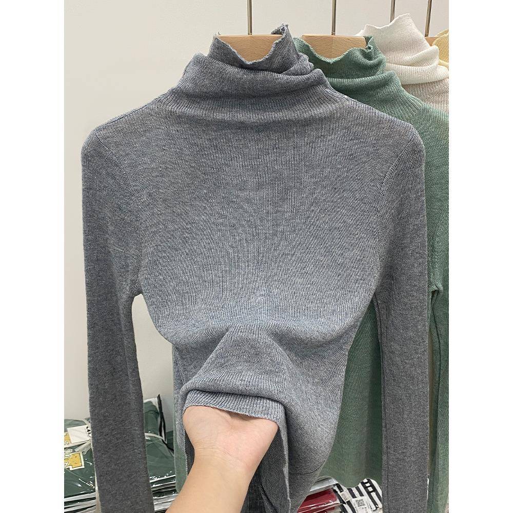 显瘦堆堆领长袖 毛衣女白色修身 t恤上衣1013c 2025早高领针织衫 冬季
