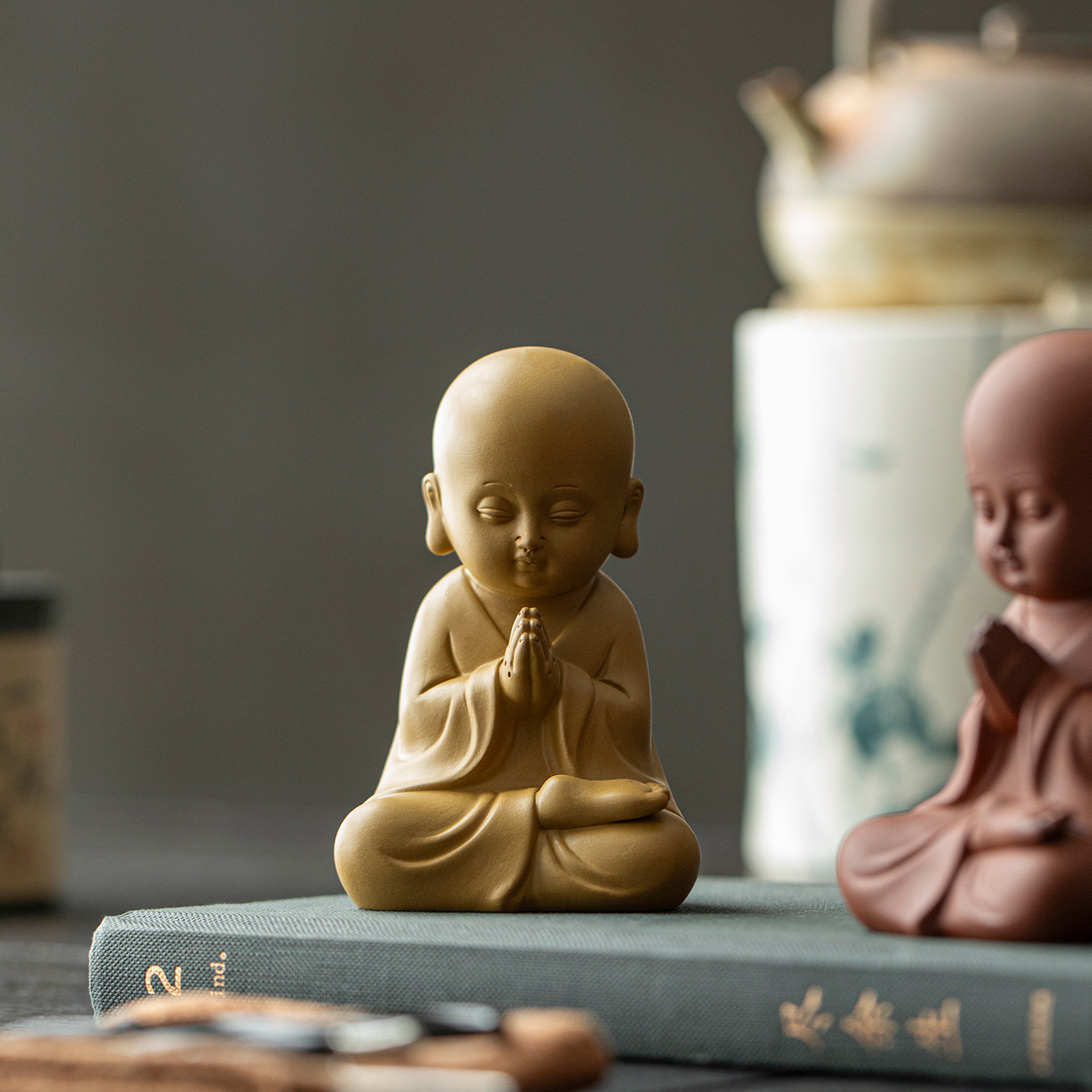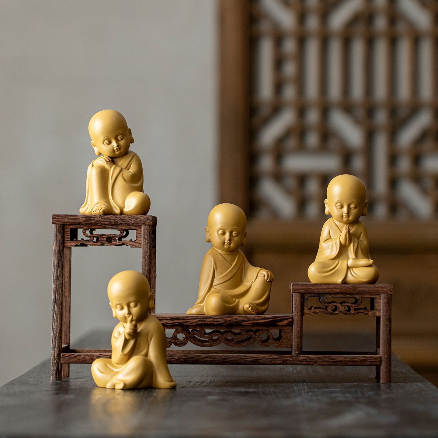 禅意四不小和尚茶桌摆件茶宠配件装 饰品茶台茶几办公室桌面小摆设
