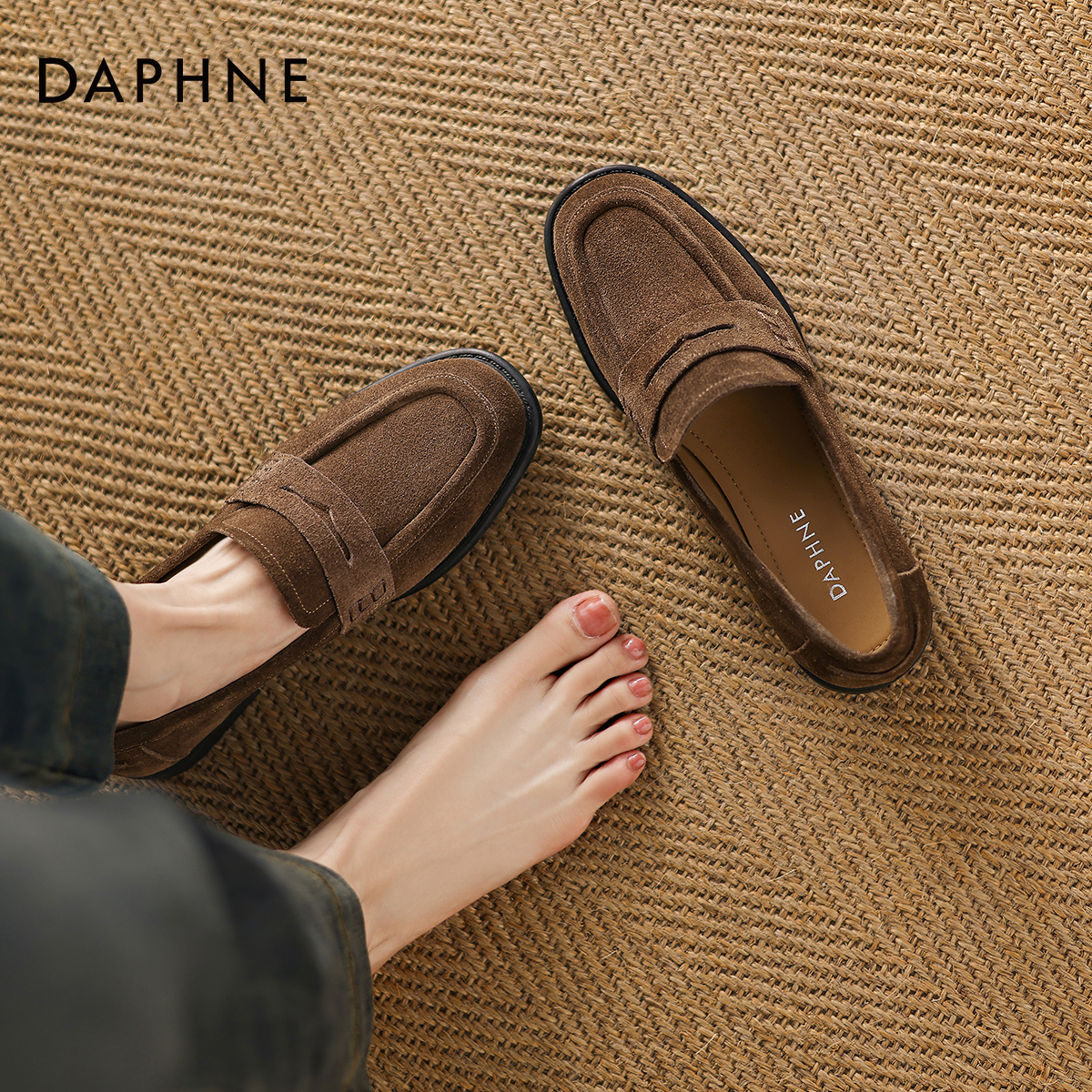 2025新款 通勤单鞋 女士女款 皮鞋 英伦风秋季 达芙妮黑色一脚蹬乐福鞋