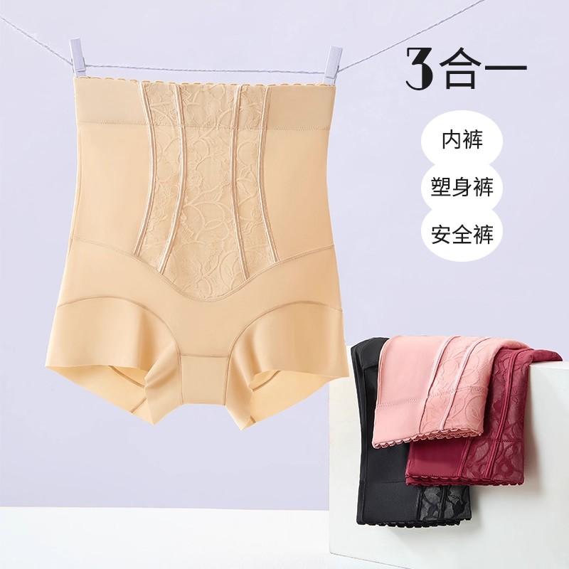 蕾丝高腰收腹提臀平角美体裤 女 收小肚子强力塑形束腹产后安全内裤
