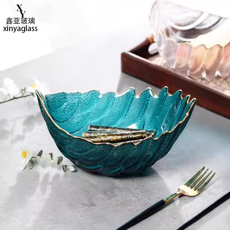 创意羽毛水果盘大容量玻璃盘子果篮果盘家用餐具客厅摆件零食餐盘