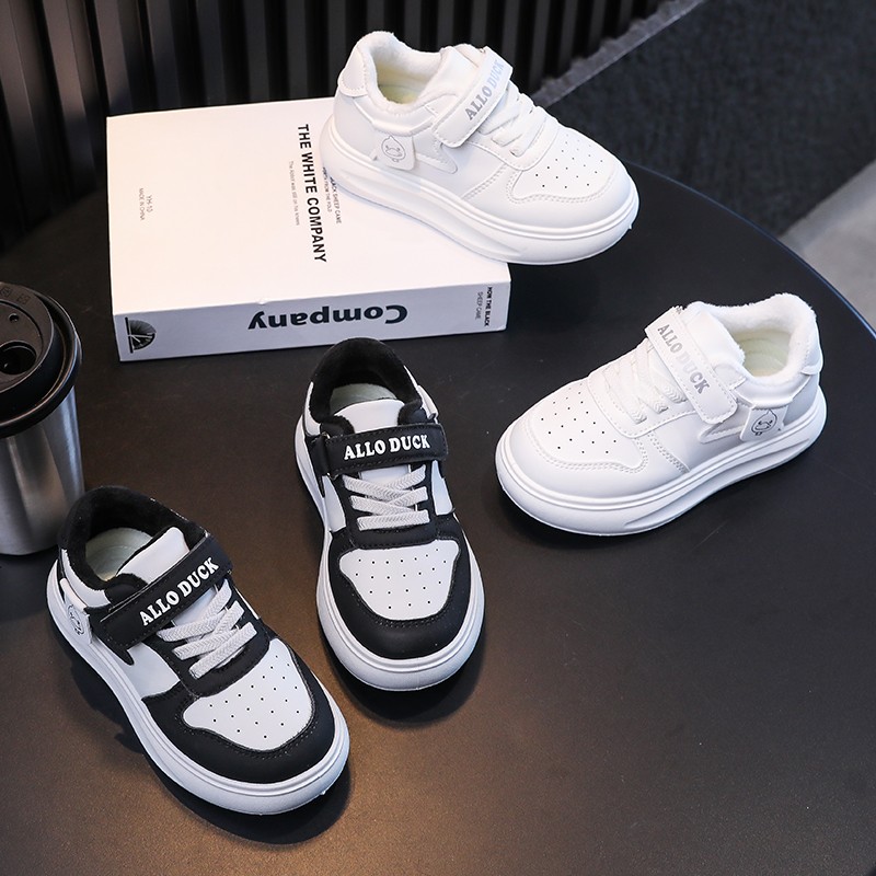 加厚保暖防滑宝宝运动小白鞋 儿童加绒二棉鞋 男童棉鞋 冬季 2025新款