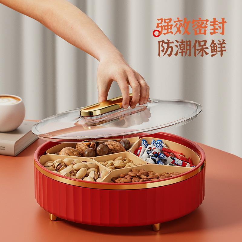 简约时尚 干果盘轻奢零食喜糖盒塑料旋转糖果盒带盖客厅茶几水果盘