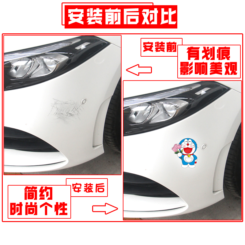多啦A梦创意反光车贴汽车保险杠电动车车身划痕遮挡装 贴纸 饰个性